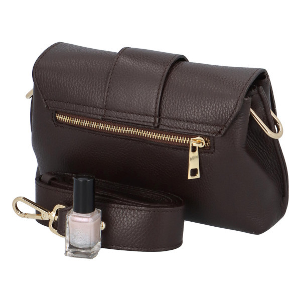 Dámská kožená kabelka přes rameno tmavě hnědá - ItalY Simonna