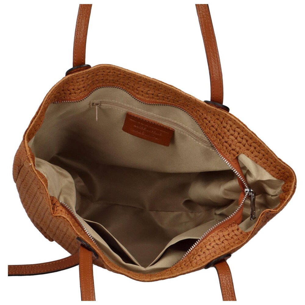 Dámská originální kožená kabelka světle hnědá - ItalY Drue Two