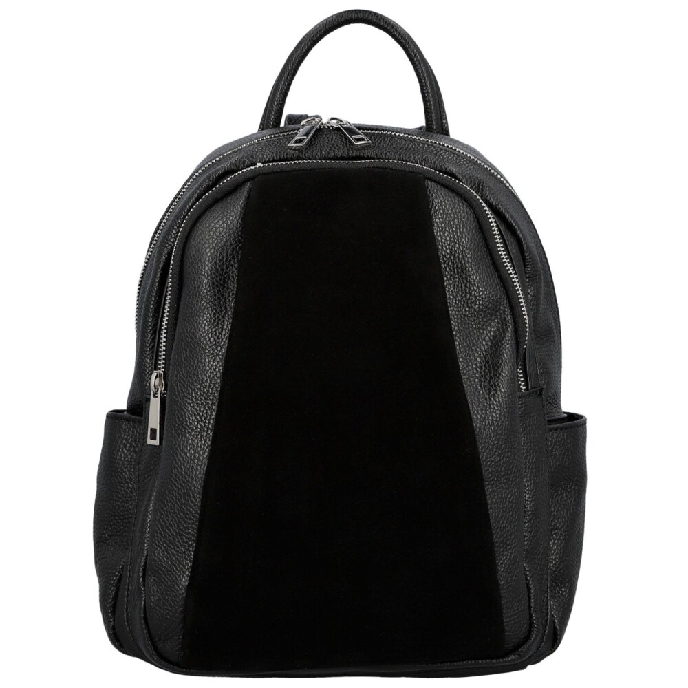 Dámský batoh z pravé kůže, který zaujme svým moderním a přitom elegantním vzhledem. Kombinace hladké kůže a broušené části na přední straně působí originálně a dodává batohu nádech luxusu. Po stranách přední části jsou decentně ukryté zipové kapsy. Batoh má hlavní kapsu na zip, uvnitř najdete kapsičky v podšívce pro přehledné uspořádání všech drobností. Před hlavním prostorem je umístěna další zipová kapsa, ideální na věci, které potřebujete mít po ruce. Pevné ucho umožňuje pohodlné nošení v ruce, zatímco nastavitelné popruhy zajistí komfort při nošení na zádech. Stříbrné kování podtrhuje elegantní charakter batohu. Stylový doplněk, který spojuje funkčnost, kvalitu a nadčasový design. Objednejte ještě dnes a vyzkoušejte, vrátit jej můžete do 30ti dnů!