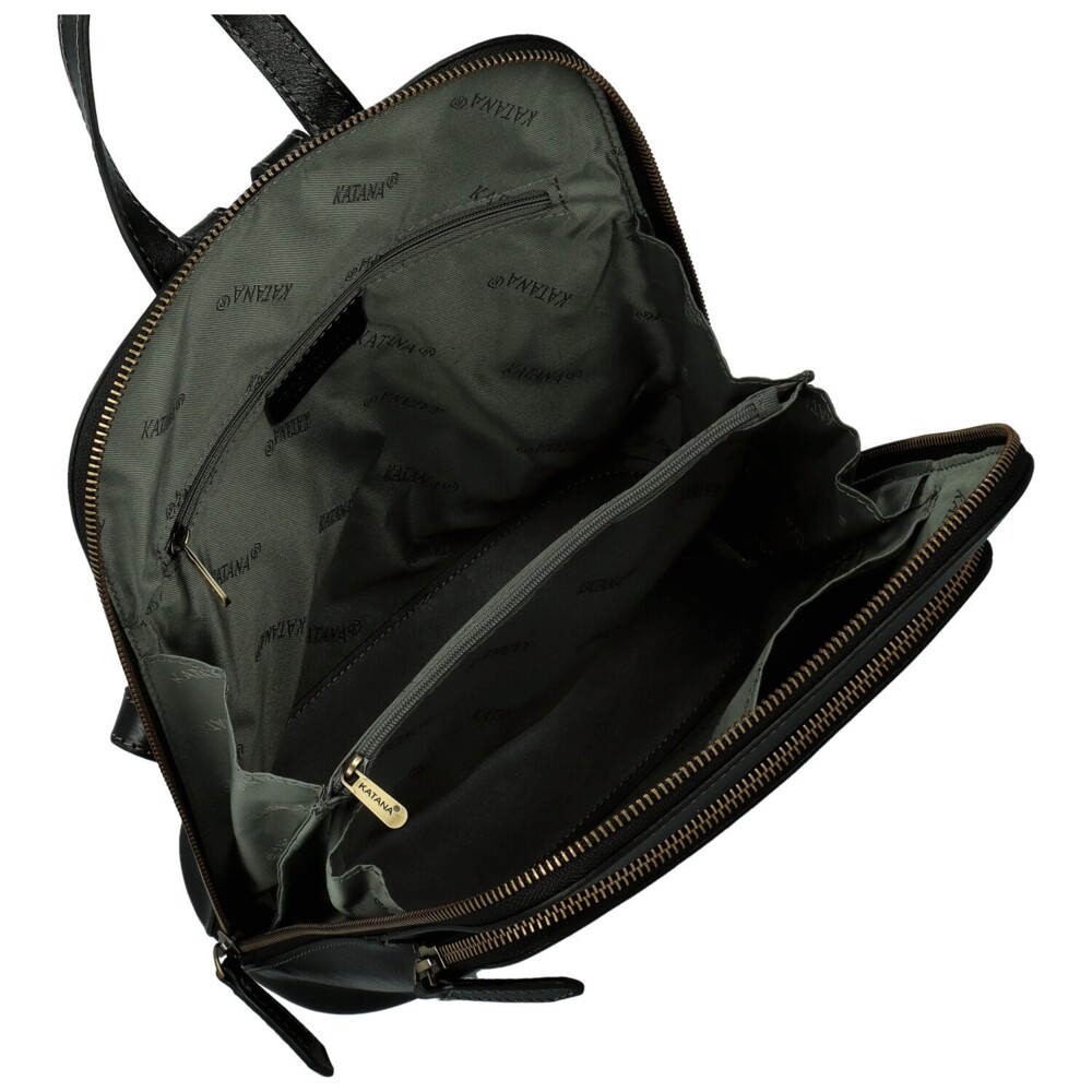 Dámský kožený batoh Katana je symbolem elegance v jednoduchém, nadčasovém provedení. Je vyroben z kvalitní, pevné kůže, která si uchovává svůj tvar i po letech nošení. Jemný lesk materiálu a precizní prošívání dodávají batohu luxusní vzhled s francouzským nádechem. Uvnitř hlavní kapsy na zip najdete přehledné uspořádání s kapsičkami v podšívce a středovou zipovou přihrádku, která prostor prakticky rozděluje. Na přední straně se nachází decentní logo značky Katana a elegantní vypouklá kapsa na zip, zatímco zadní zipová kapsa poskytne bezpečné místo pro cennosti. Pro pohodlné nošení má batoh pevné kožené ucho a nastavitelné popruhy, které se přizpůsobí vaší postavě. Mosazné kování podtrhuje jeho vytříbený charakter. Ideální volba pro ženy, které chtějí vypadat stylově, a přitom mít vše přehledně uspořádané. Objednejte ještě dnes a vyzkoušejte, vrátit jej můžete až do 30 dnů!
