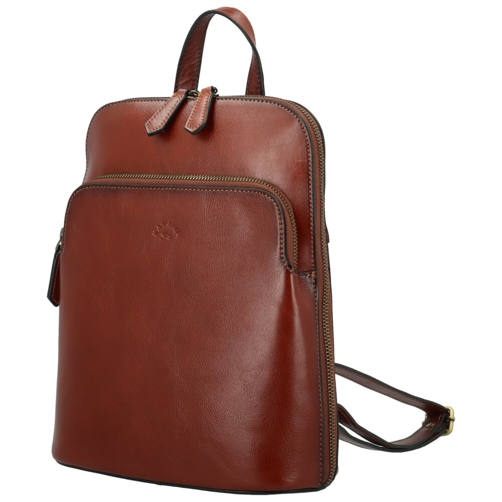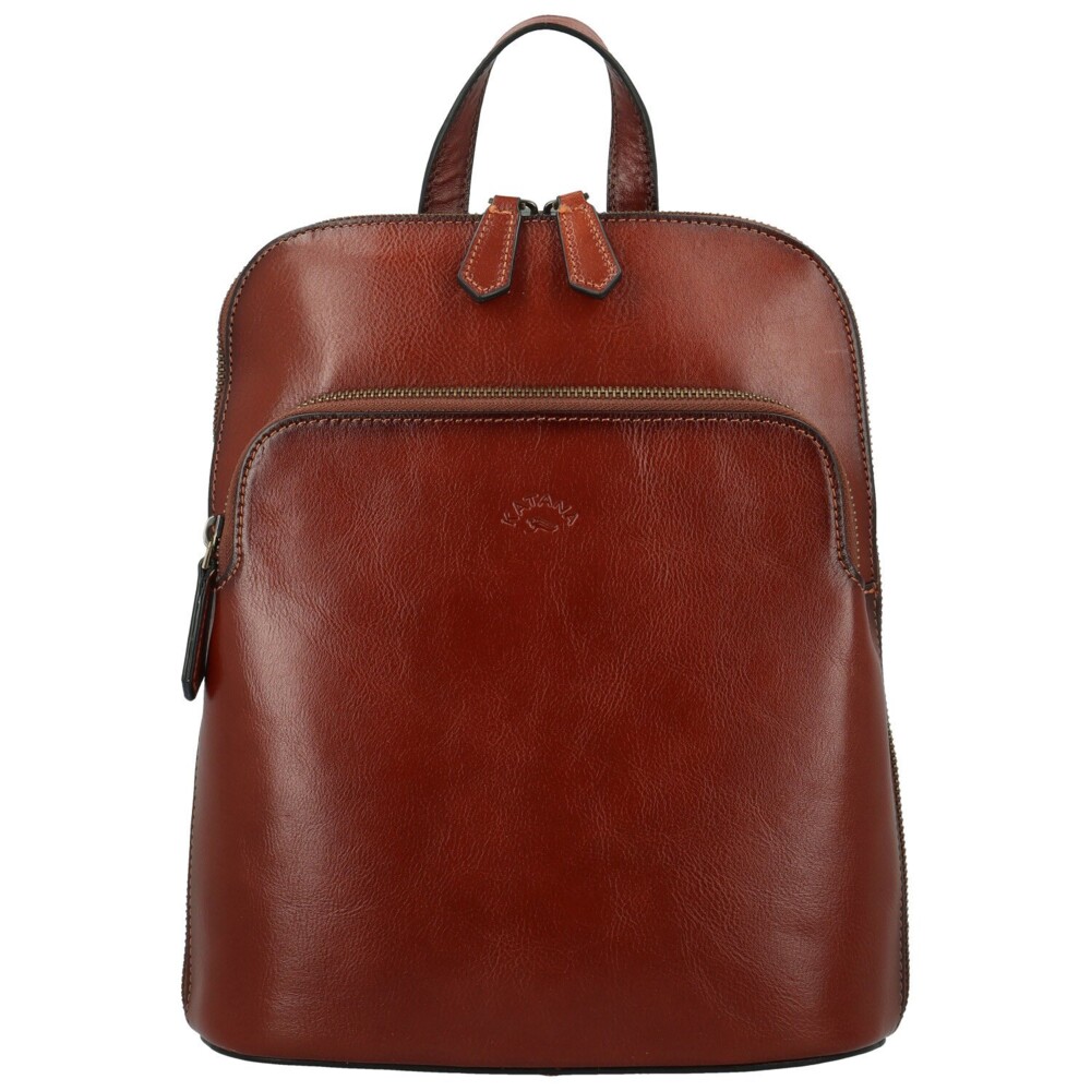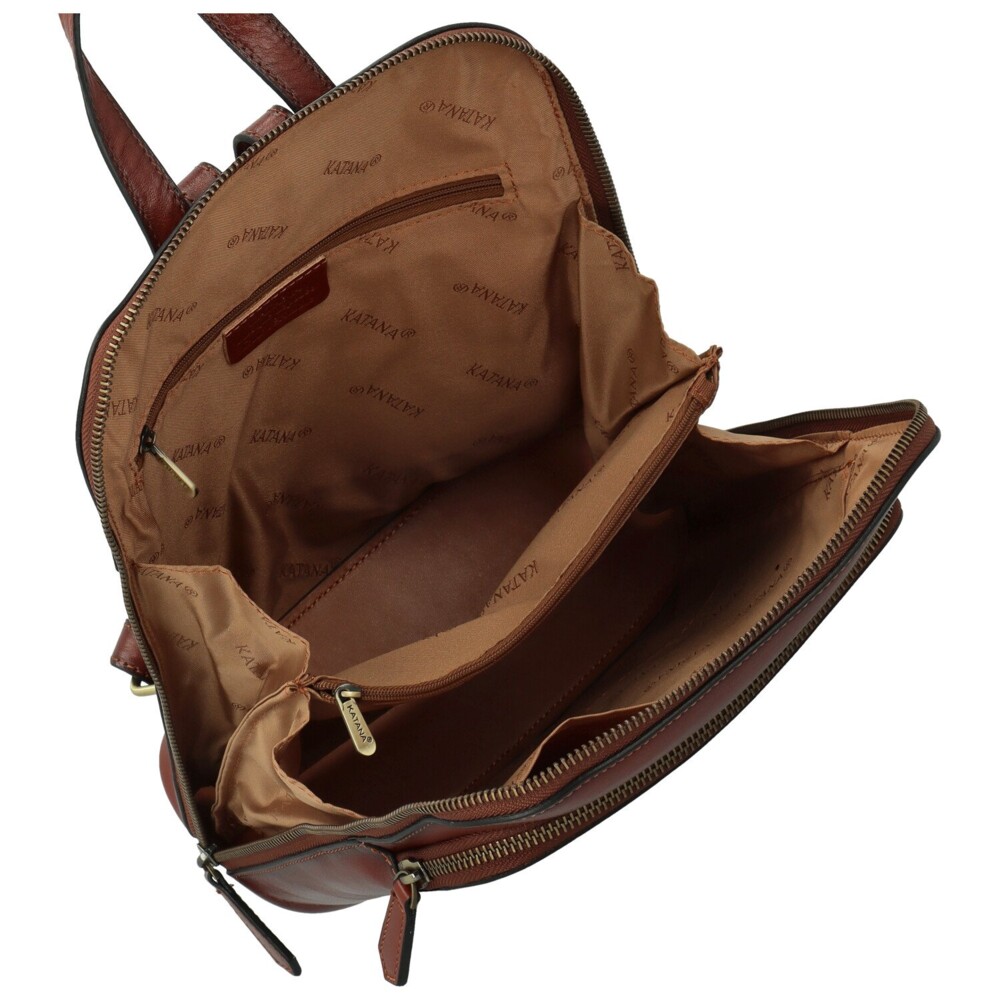Dámský kožený batoh Katana je symbolem elegance v jednoduchém, nadčasovém provedení. Je vyroben z kvalitní, pevné kůže, která si uchovává svůj tvar i po letech nošení. Jemný lesk materiálu a precizní prošívání dodávají batohu luxusní vzhled s francouzským nádechem. Uvnitř hlavní kapsy na zip najdete přehledné uspořádání s kapsičkami v podšívce a středovou zipovou přihrádku, která prostor prakticky rozděluje. Na přední straně se nachází decentní logo značky Katana a elegantní vypouklá kapsa na zip, zatímco zadní zipová kapsa poskytne bezpečné místo pro cennosti. Pro pohodlné nošení má batoh pevné kožené ucho a nastavitelné popruhy, které se přizpůsobí vaší postavě. Mosazné kování podtrhuje jeho vytříbený charakter. Ideální volba pro ženy, které chtějí vypadat stylově, a přitom mít vše přehledně uspořádané. Objednejte ještě dnes a vyzkoušejte, vrátit jej můžete až do 30 dnů!