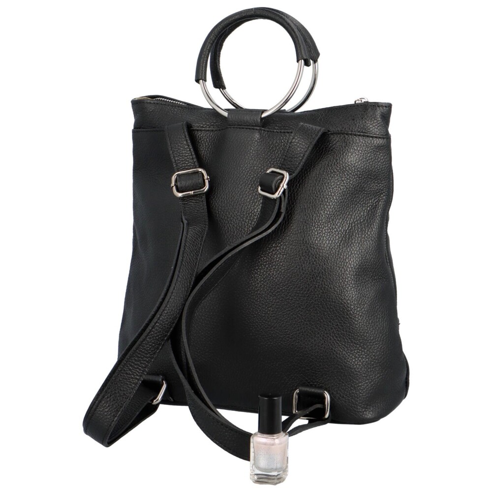 Batůžek zaujme hned na první pohled designovým kruhem z poloviny obšitým kůží. Ten poslouží jako ucho k pohodlné manipulaci nebo zavěšení batůžku. Hlavní kapsu zajišťuje stříbrný zip a uvnitř je pak dostatek prostoru na vše, co budete potřebovat při vašich denních aktivitách. Uvnitř jsou k dispozici i menší přihrádky na drobnosti. Na přední části pak nabízí ještě jednu menší kapsu na zip. Popruhy jsou nastavitelné pro vaše největší pohodlí. Objednejte ještě dnes a vyzkoušejte, vrátit jej můžete do 30ti dnů!