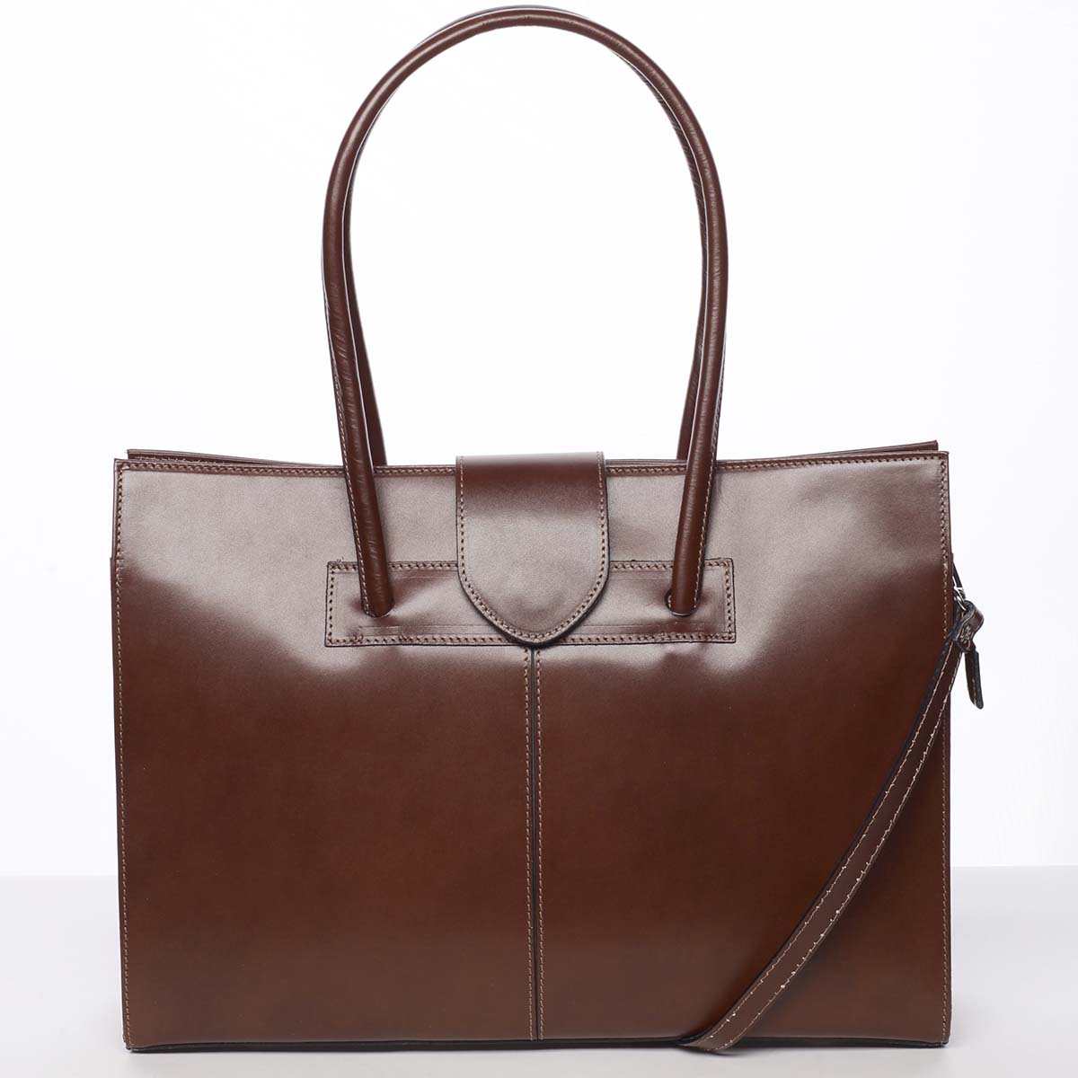 Elegantní a módní dámská kožená kabelka hnědá - ItalY Alison