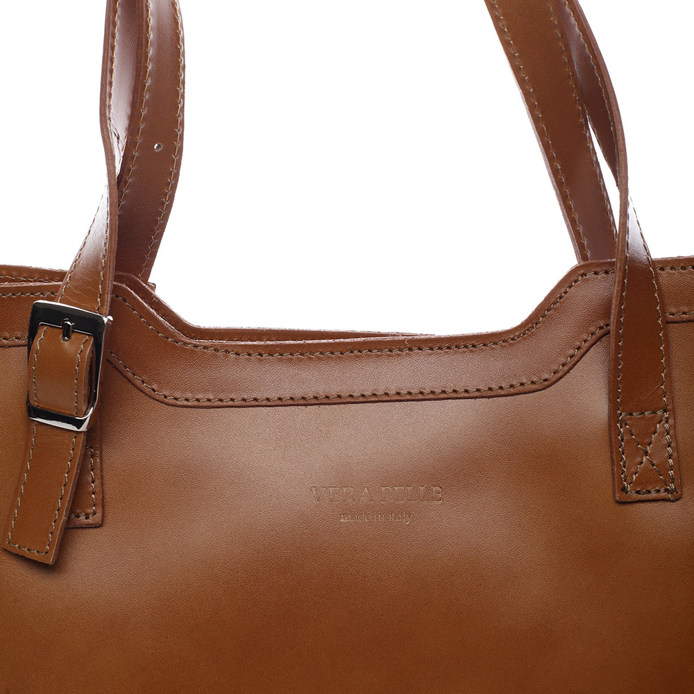 Hnědá jednoduchá elegantní kožená kabelka přes rameno nebo do ruky ItalY s nastavitelnými uchy. Naprosto univerzální kabelka pro každého. Nemáte čas ladit kabelku s outfitem? Zvolte neutrální hnědou kabelku Melisu. Zavírání je na zip, uvnitř je dělený prostor kapsou na zip, dále dvě postranní kapsičky na drobnosti a jedna kaspička na zip zezadu. Kabelka je pevná, drží tvar. Novinka 2016.