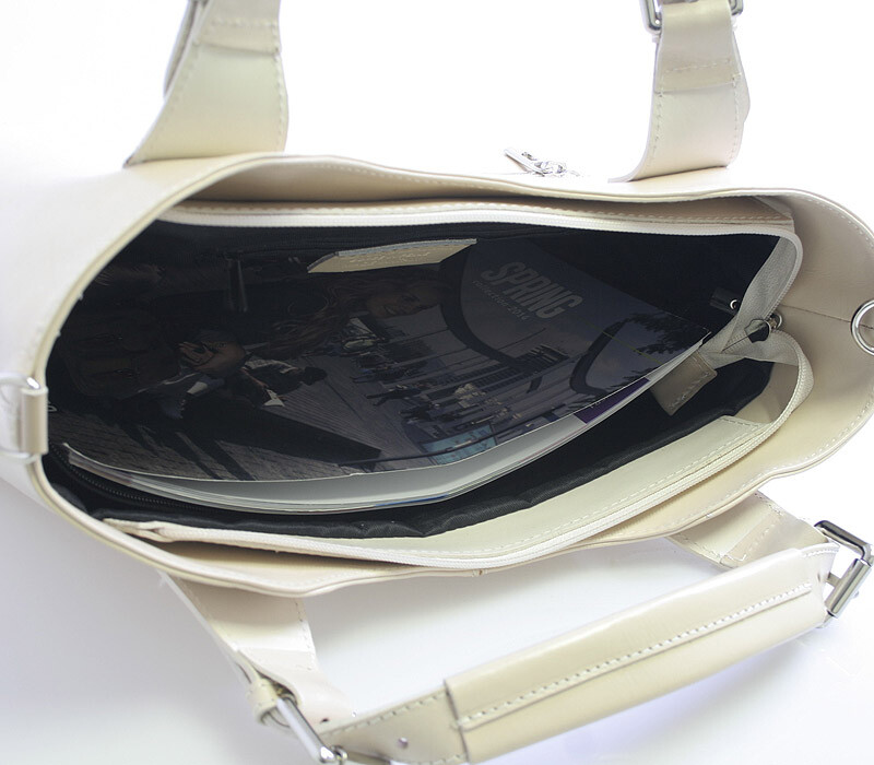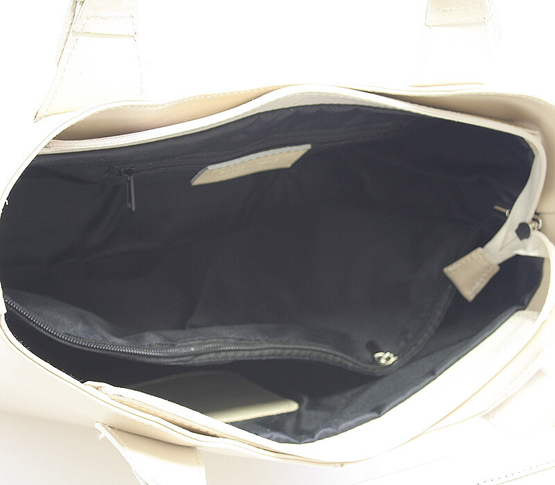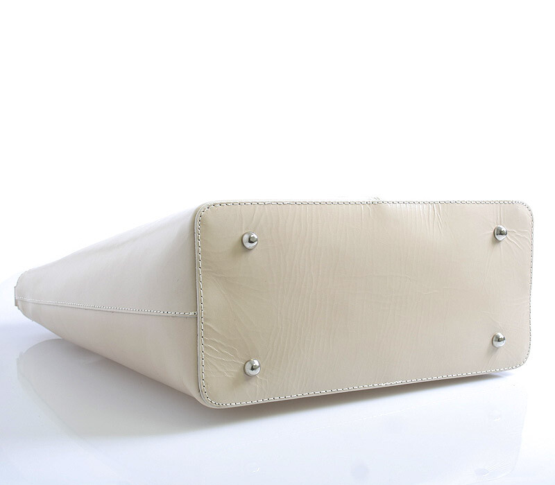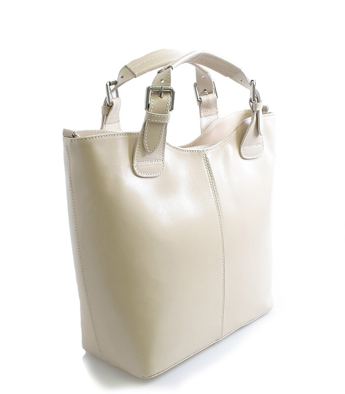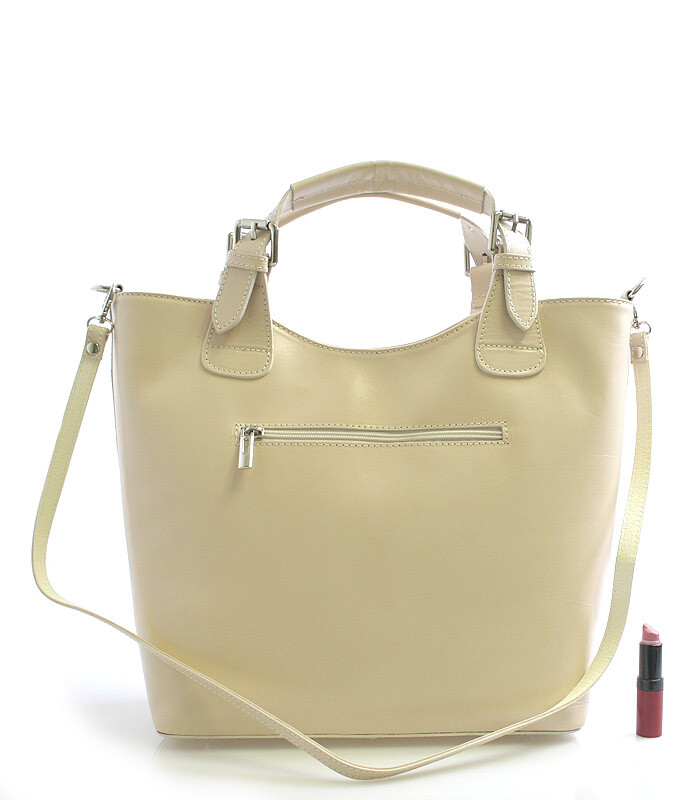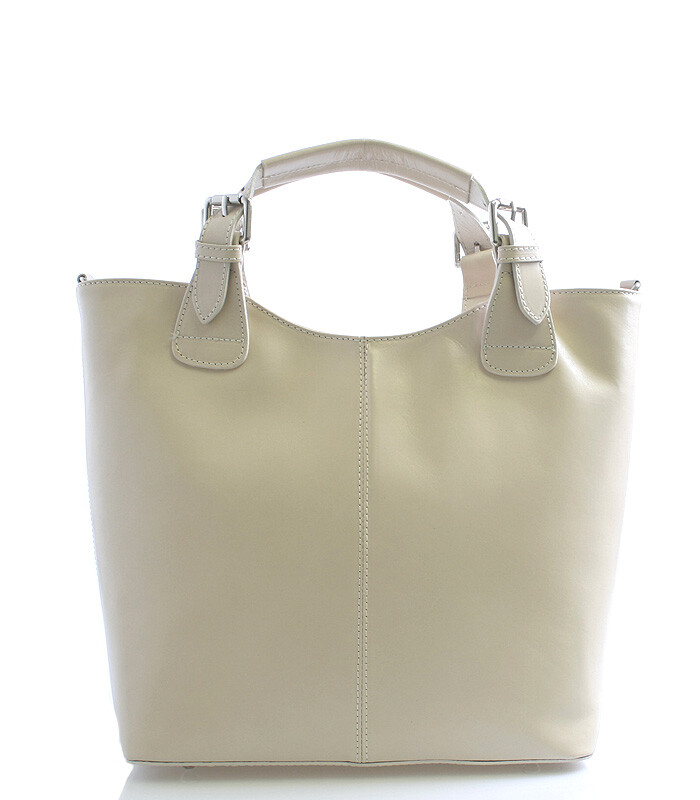 Krémová luxusní větší kožená kabelka ItalY. Kvalitní kabelka z Itálie, kterou si zamiluje každá žena. Zaujme Vás především svým lehkým svěžím designem a praktičností. Kabelku můžete nosit každodenně nebo i na večírky jako módní doplněk. Zavírá se zipem, uvnitř je velký prostor rozdělený kapsou na dvě části, na jedné straně má menší kapsu na zip a naproti dvě otevřené na drobnosti. Zvenku má kapsu na zip na drobnosti. Součástí je odnímatelný kožený popruh. Novinka 2015.