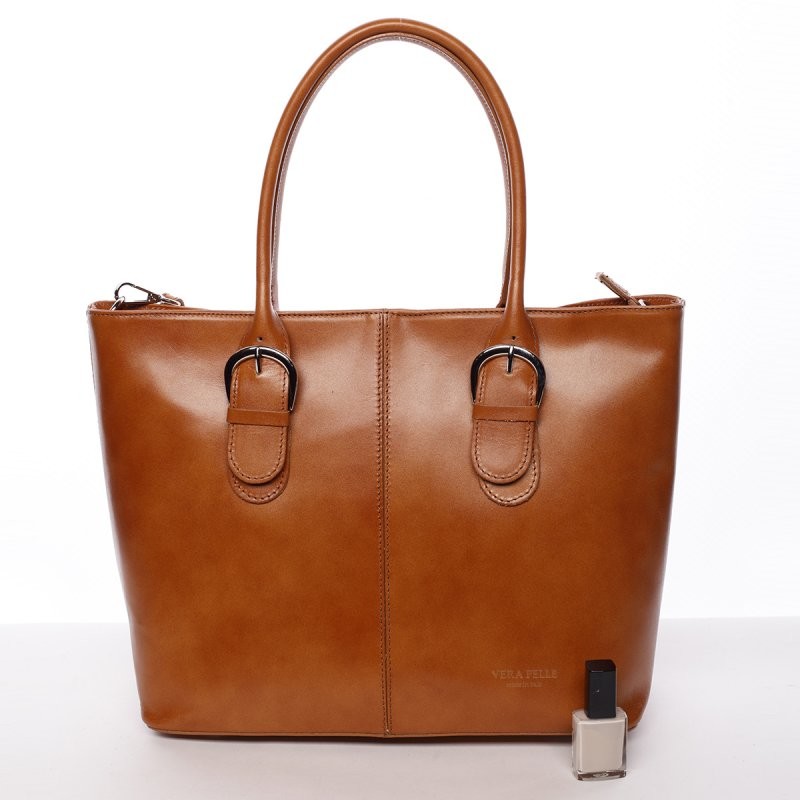 Moderní a elegantní dámská kožená kabelka koňaková - ItalY Achilla