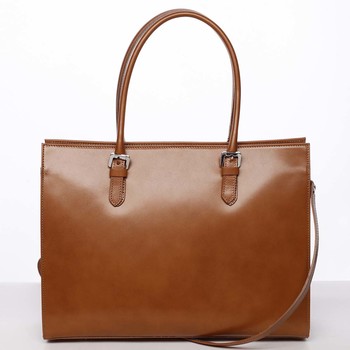 Moderní a elegantní dámská kožená kabelka koňaková - ItalY Madelia