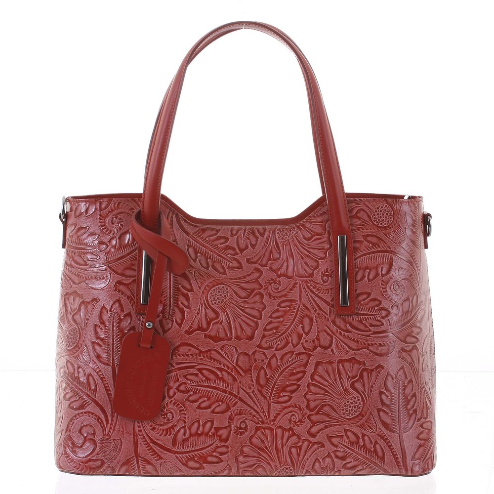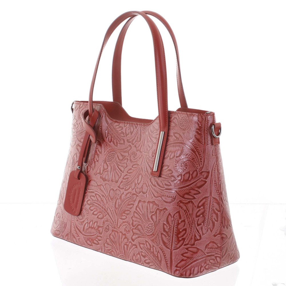 Velká dámská kožená kabelka červená se vzorem - ItalY Afrodite