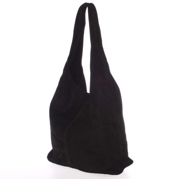 Černá luxusní velká měkká kožená semišová kabelka ItalY. Elegantní klasický kousek k ležérnímu dámskému outfitu. Z obou stran kabelky je stejná. Ucho kabelky je pevně přišito. Uvnitř naleznete pouze prostor pro denní potřeby a osobní věci. Zapíná se magnetickým cvočkem na menším koženém jazyku, ke kterému je připojen kovový řetízek s kapsou se zipem, na cennosti či kosmetiku. Novinka. Objednejte ještě dnes a vyzkoušejte, vrátit ji můžete až za 30 dnů! Luxus může být i jednoduchý!