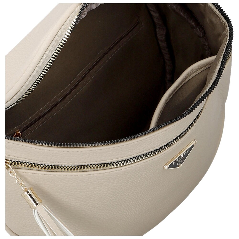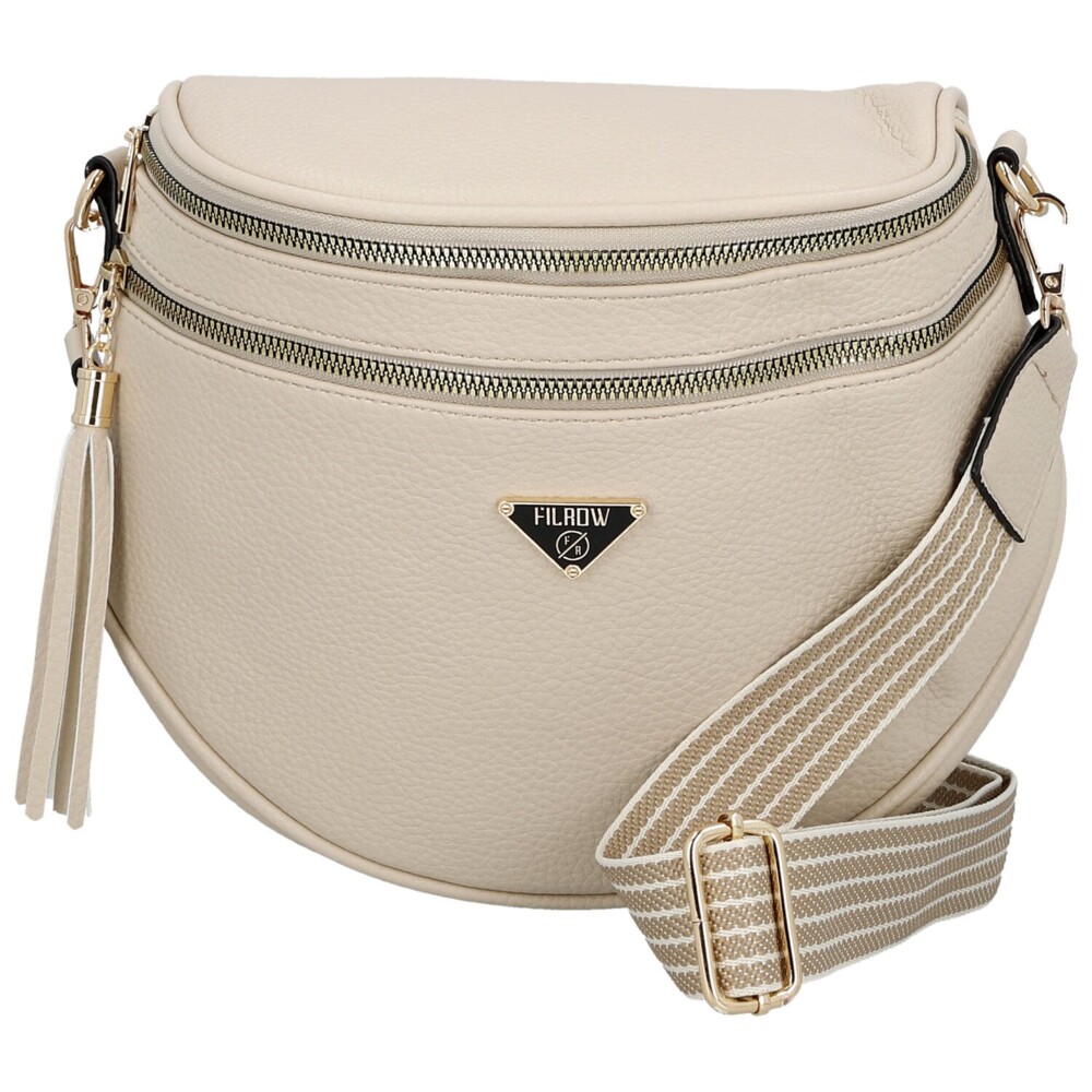 Perfektní kousek pro každý den, který rozzáří váš outfit a nabídne maximální pohodlí při nošení. Stylová větší ledvinko-kabelka z kvalitní koženky je ideálním doplňkem pro ženy, které chtějí spojit módu s praktičností. Moderní střih a prostorné provedení nabízí dostatek míst na všechny každodenní nezbytnosti. Přední stranu zdobí dvojice zipů a decentní logo značky. Vrchní zip ukrývá hlavní kapsu, ve které najdete praktické kapsičky v podšívce. Stylovým detailem je praktický střapec na zipu. Na zadní straně se nachází další zipová kapsička. Zlaté kování krásně podtrhuje elegantní design dodává kabelce nádech luxusu. Díky nastavitelnému textilnímu popruhu na připnutí ji můžete nosit jako ledvinku, crossbody nebo přes rameno. Objednejte ještě dnes a vyzkoušejte, vrátit ji můžete až do 30 dnů!