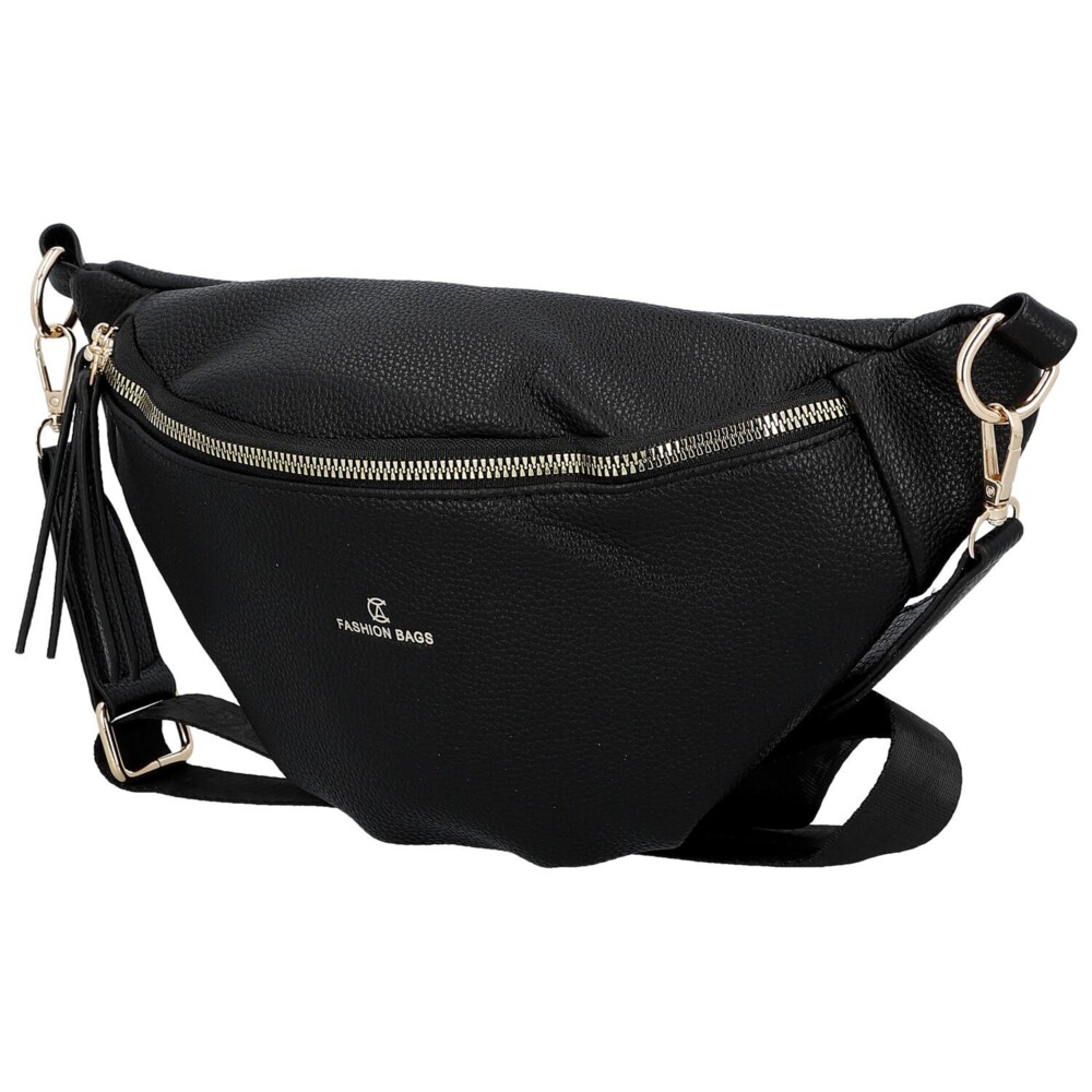 Rozjeď svůj outfit ve velkém stylu s touto trendy dámskou ledvinkou z kvalitní koženky! Moderní design doplňuje logo značky na přední straně, které jí dodává šmrnc a módní energii. Praktická hlavní kapsa se zapínáním na zip ukrývá dostatek prostoru pro vše důležité, uvnitř najdeš i menší kapsičku v podšívce. Na zadní straně nechybí další zipová kapsa. Stylové zlaté kování perfektně ladí s celkovým vzhledem a dodává ledvince elegantní nádech. Díky dlouhému nastavitelnému textilnímu popruhu na připnutí ji můžeš nosit přes rameno, jako crossbody nebo klasicky kolem pasu. Objednejte ještě dnes a vyzkoušejte, vrátit ji můžete až do 30 dnů!
