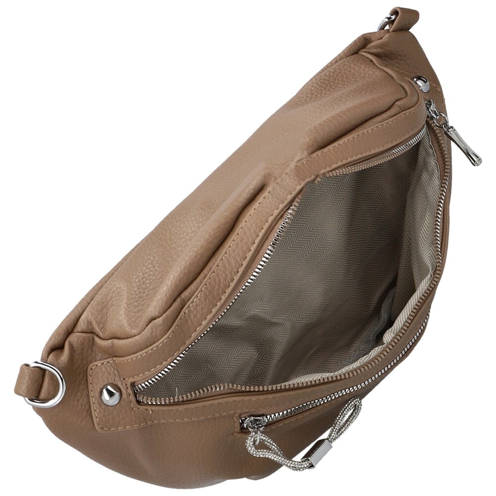 Moderní koženková kabelko-ledvinka, která si vás získá svým elegantním vzhledem a promyšleným designem. Hlavní kapsa se stříbrným zipem ukrývá kapsičky v podšívce, ideální pro všechny drobnosti, které chcete mít přehledně uložené. Přední část doplňuje menší zipová kapsa se stříbrným leskem a zadní strana nabízí další praktické místo pro vaše cennosti. Nastavitelný textilní popruh umožní pohodlné nošení přes rameno i crossbody. Stříbrné detaily dodávají ledvince stylový šmrnc, ideální volba pro ženy, které hledají spojení elegance, funkčnosti a městské ležérnosti. Objednejte ještě dnes a vyzkoušejte, vrátit ji můžete až do 30 dnů!