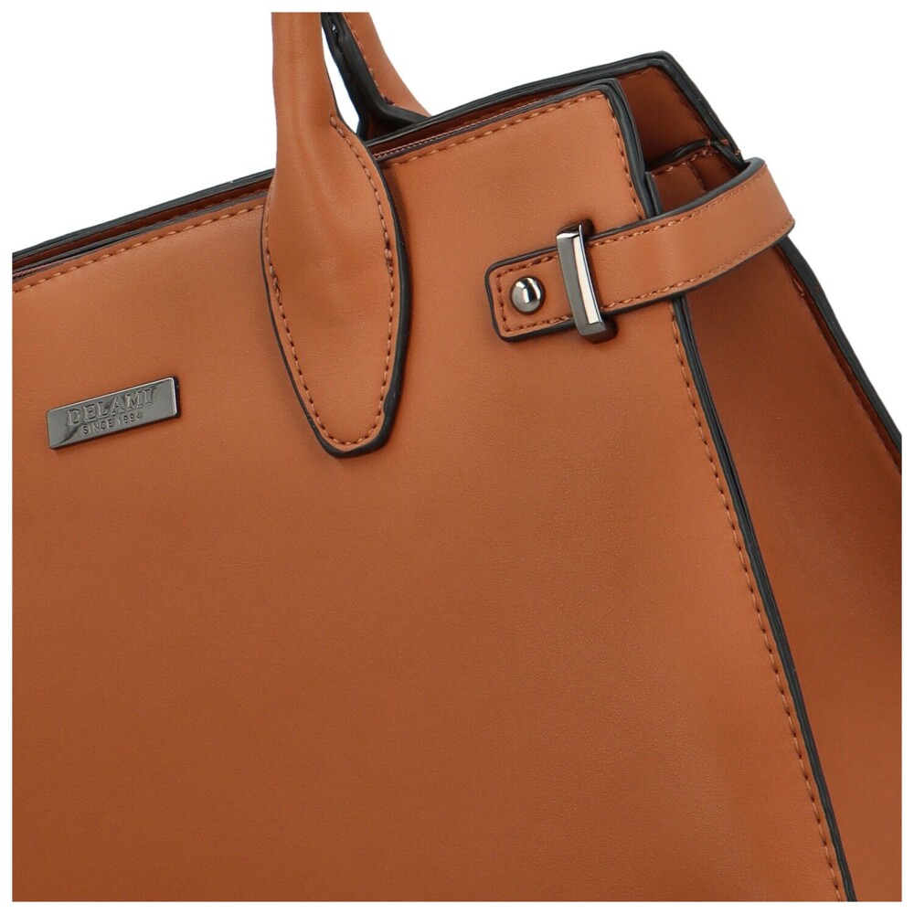 Okouzlující vzhled a příjemná ekologická kůže v nadčasovém designu, které neodolá žádná žena. Kabelka v pevném provedení od českých návrhářů je praktická a hodit se vám bude ke všem vašim outfitům. Odlehčený materiál a pevné dlouhé uši zajistí, pohodlné nošení po celý den. Černé lemování a vkusné prošití po obvodu kabelky zdobí tento kousek od české značky Delami. Logo značky na přední straně v tmavě stříbrné barvě a menší řemínky přes vrchní boční strany, doplní jemný vzhled kabelky. Kabelka disponuje hlavní kapsou ve které najdete prostor rozdělený kapsou na zip, nechybí ani menší boční kapsičky v podšívce. Zadní vnější díl vám také nabídne menší zipovou kapsu. Kovové nožičky ve spodní části zajistí, že se kabelka nepoškrábe ani nezašpiní. Tento elegantní model, ušitý s láskou se stává výjimečným doplňkem pro každou ženu. Objednejte ještě dnes a vyzkoušejte, vrátit ji můžete až do 30 dnů!