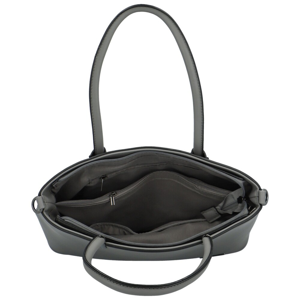 Kabelka je módním kouskem, který dokáže podtrhnout outfit každé ženy. Tento kousek je od českých designérů a je vyrobený z ekologické kůže, která je velmi příjemná a odlehčená. Kabelka nabízí hlavní velkou kapsu na zip, uvnitř je praktická středová kapsa na zip, do které uschováte vaše cennosti. Kapsičky najdete i na vnitřních bočních stranách v podšívce. Na zadní straně poslední zipová kapsička. Kabelka v nadčasovém designu, kterou zdobí v přední části pouze stříbrné logo značky a kovové plíšky na uších kabelky, které jsou pevné a krásně sedí v ruce. Pro nošení na rameni poslouží dlouhý, nastavitelný popruh, který se dá připnout. Kabelka má i praktické kovové nožičky, proti poškrábáni či zašpinění spodní části. Tato kabelka je vyrobená s láskou a promění váš outfit v dokonalý celek. Objednejte ještě dnes a vyzkoušejte, vrátit ji můžete až do 30 dnů!