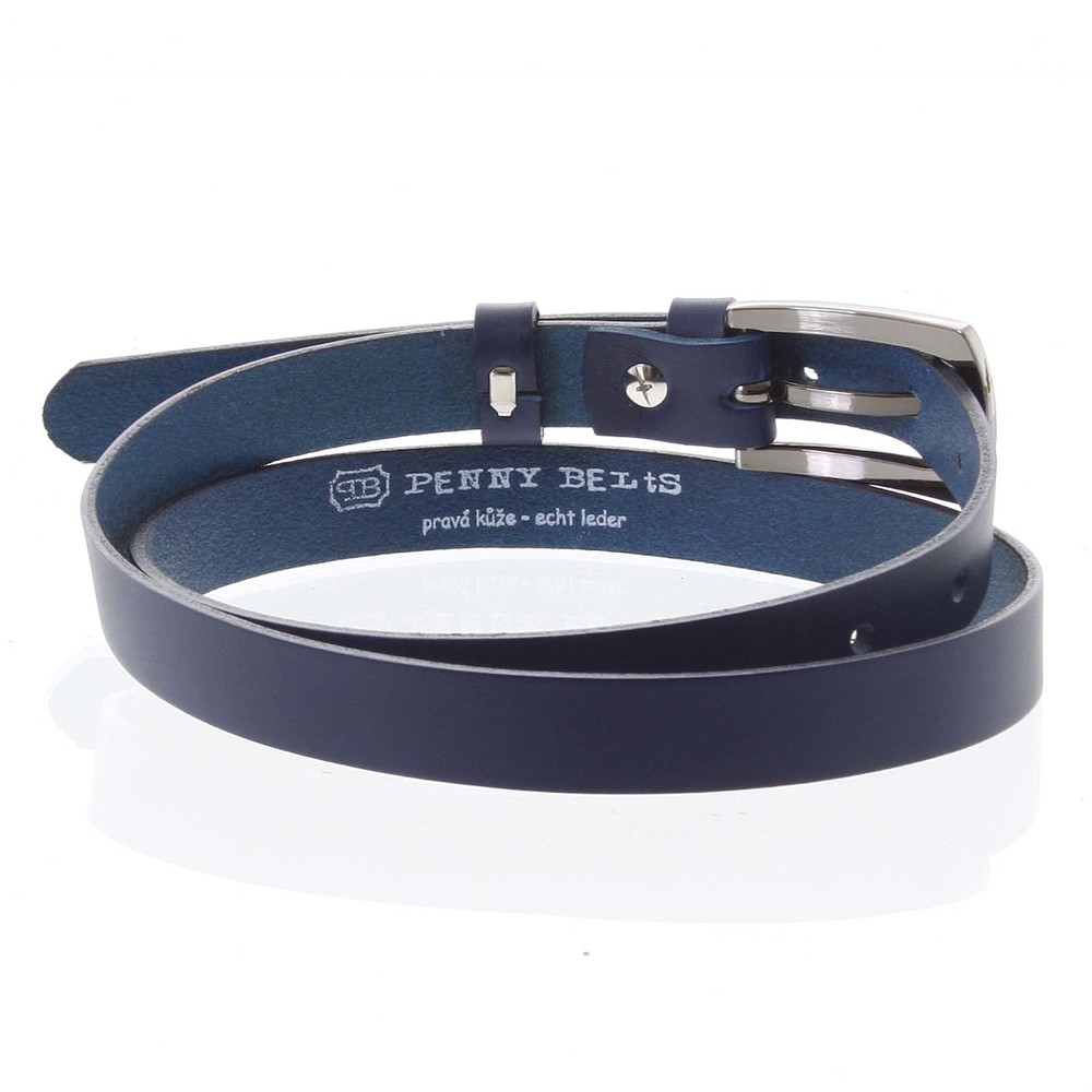 Módní modrý dámský opasek hladký Penny Belts s decentní poniklovanou (nikl satinato) sponou. Opasek je vyroben z prvotřídní italské hovězí usně. Opasek lze přesně zkrátit na požadovanou délku. Objednejte ještě dnes a vyzkoušejte, zboží můžete vrátit až za 30 dnů!