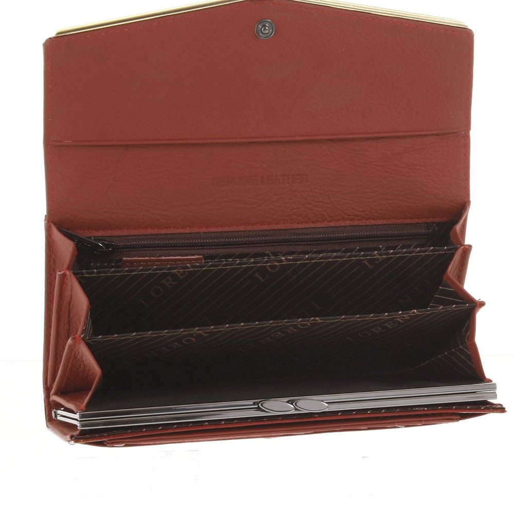 Představujeme vám koženou dámskou peněženku od značky Loren v syté červené lakované barvě. Praktická luxusní peněženka je důmyslně řešena, uvnitř najdete separované přihrádky na bankovky, mincovník na kovový patent a hlavně praktický výklopný pořadač na karty. Na zadní straně je další volná kapsa na lístečky. Tuto malou velkou peněženku si rychle oblíbíte, navíc skvěle padne do ruky. Kvalitní zpracování kůže za skvělou cenu, pouze na našem eshopu. Objednejte ještě dnes a vyzkoušejte, vrátit ji můžete až za 30 dnů!