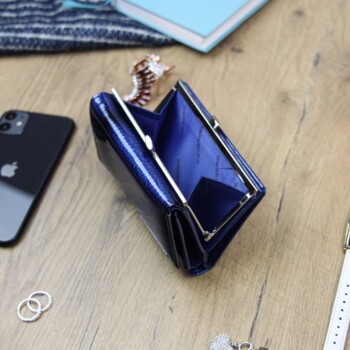 Dámská kožená lakovaná peněženka modrá - Gregorio Larrisa