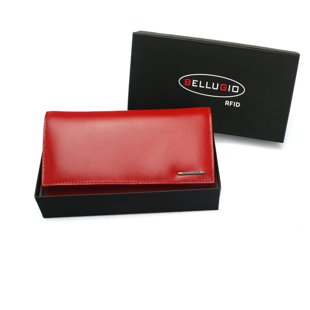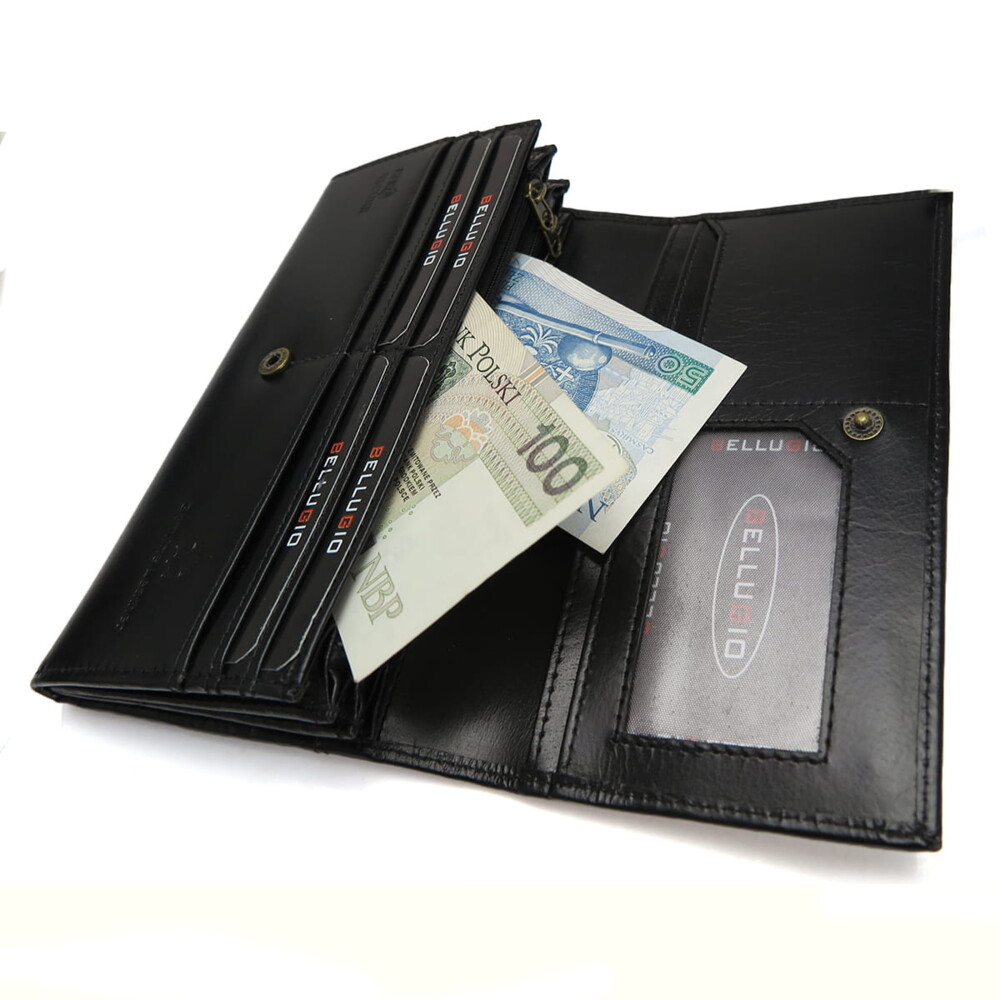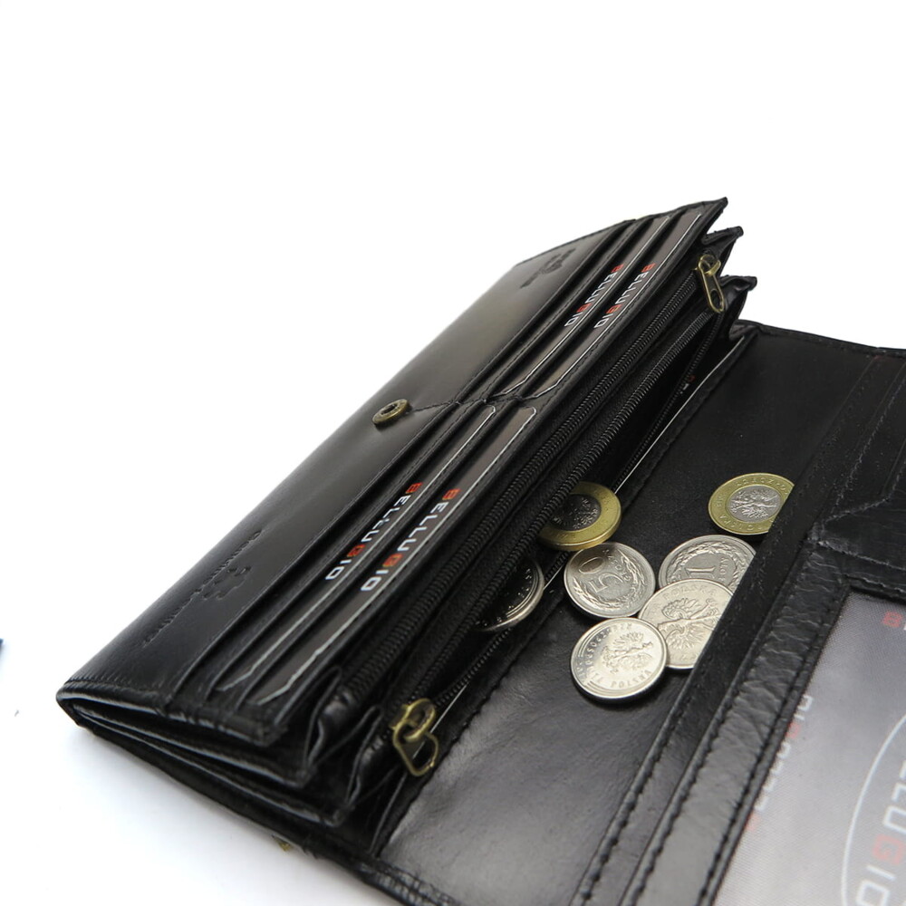 Krásná a velká peněženka z pravé kůže. Po rozevření klopy na druk, peněženka nabídne prostorné přihrádky na papírové peníze a velkou kapsu na druk, na vaše drobné mince. Nechybí místo pro karty a oblíbené průhledné okénko pro fotografie vašich nejbližších. Přední část je oživena jemným logem značky. Peněženka má RFID ochranu, proti nechtěnému čtení platebních karet. Zboží se dodává v dárkové krabičce. Objednejte ještě dnes a vyzkoušejte, vrátit ji můžete až do 30 dnů!