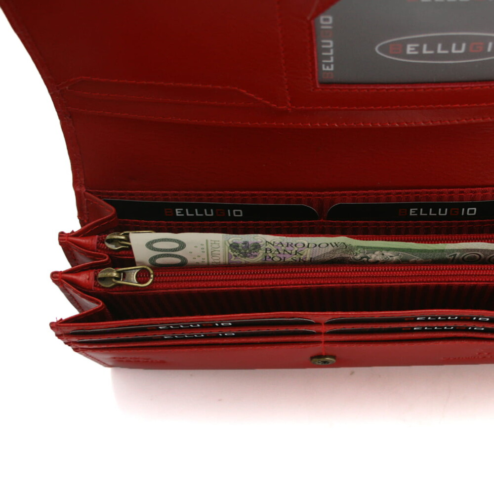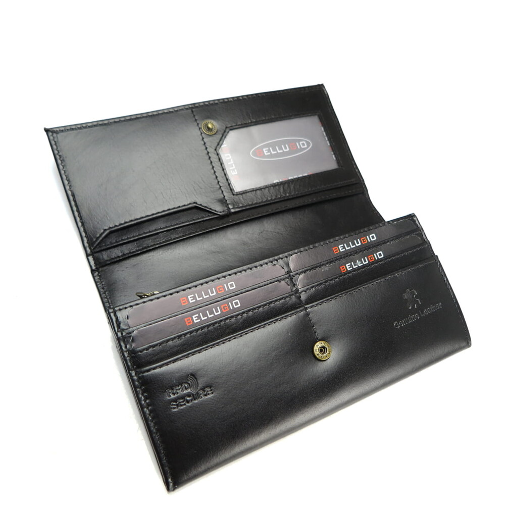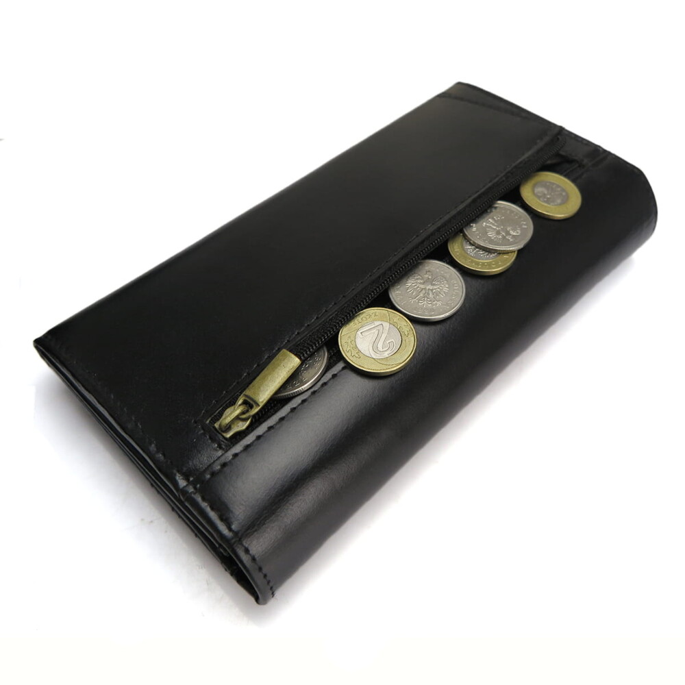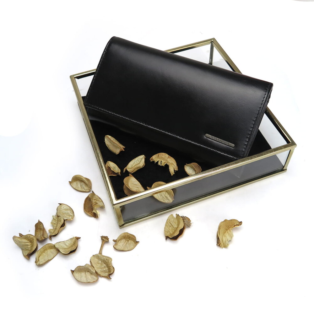 Krásná a velká peněženka z pravé kůže. Po rozevření klopy na druk, peněženka nabídne prostorné přihrádky na papírové peníze a velkou kapsu na druk, na vaše drobné mince. Nechybí místo pro karty a oblíbené průhledné okénko pro fotografie vašich nejbližších. Přední část je oživena jemným logem značky. Peněženka má RFID ochranu, proti nechtěnému čtení platebních karet. Zboží se dodává v dárkové krabičce. Objednejte ještě dnes a vyzkoušejte, vrátit ji můžete až do 30 dnů!