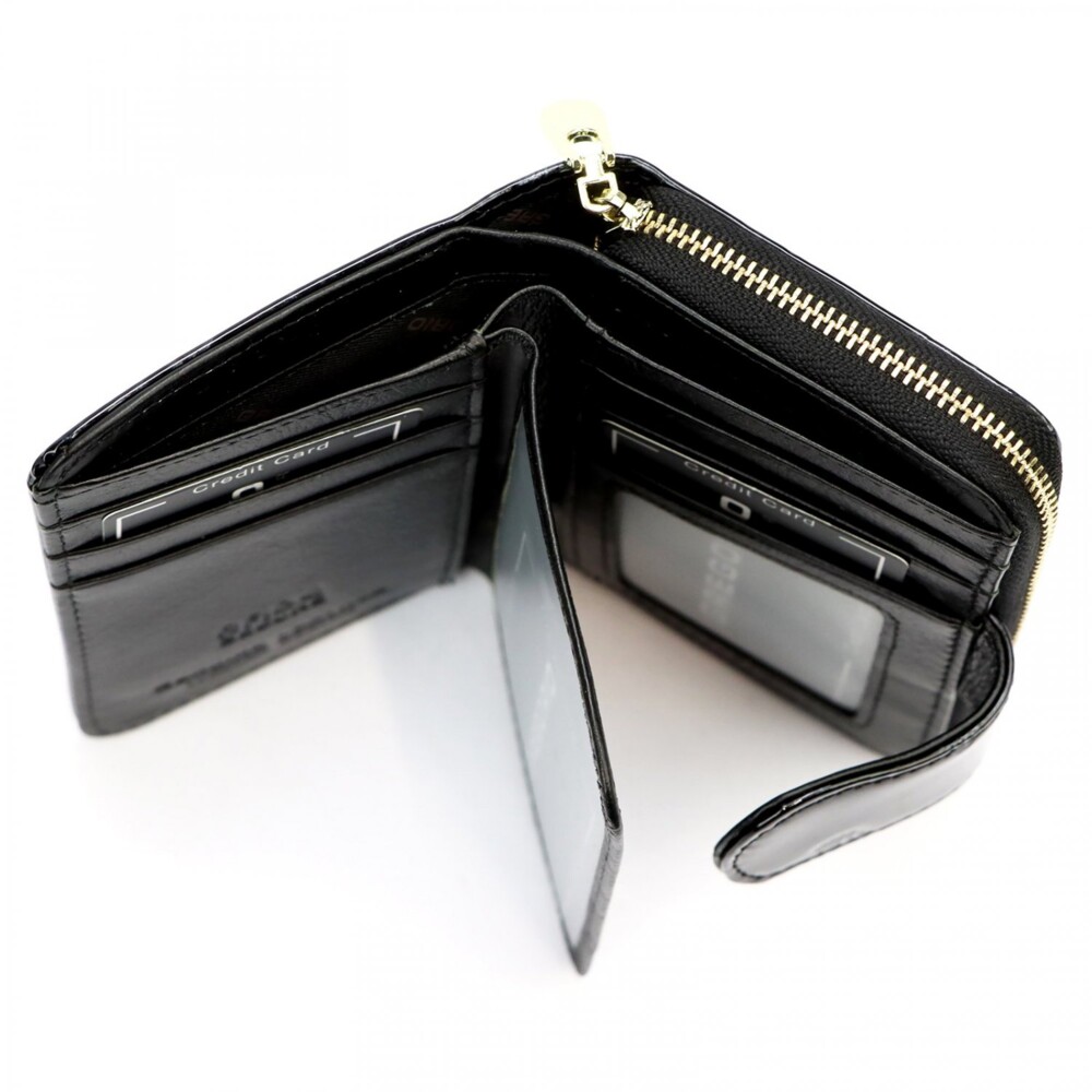 Peněženka v trendy designu vyrobená s lakované kůže, působí luxusně na pohled i na dotek s dostatkem prostoru pro vaše platební karty. Po rozevření klopy na druk, nabídne prostor pro uložení Vašich peněz, dokladů i karet. Na druhé straně je samostatná přihrádka na zip pro uložení drobných mincí. Přední díl zdobí logo značky. Ideální pro ženy, které chtějí mít vše přehledně uspořádané a zároveň v elegantním stylu. Peněženka se dodává v dárkové krabičce. Objednejte ještě dnes a vyzkoušejte, vrátit ji můžete až do 30 dnů!