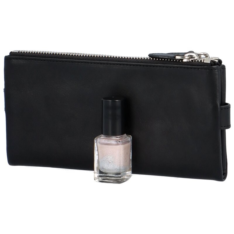 Černá luxusní peněženka od známé značky Katana. Pouzdro na Vaše finance a doklady je z kůže je módním doplňkem každé ženy s vkusem a stylem. Je měkká, se dvěma zipy a vnitřní blok na doklady a kreditní karty otevřete dvěma kovovými cvočky.