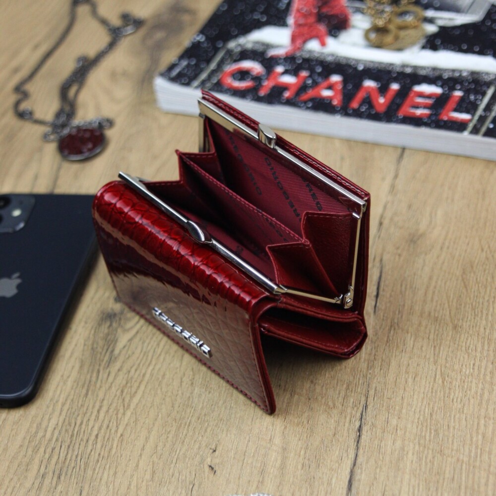 Elegantní a praktický doplněk, je tato peněženka od značky Gregorio je menší velikosti a praktického stylu. Bezpečně uloží Vaše bankovky, mince i doklady a pohodlně ji můžete nosit ve Vaší oblíbené kabelce. Peněženka je lakovaná s neotřelým vzorem a logem značky na přední straně. Po otevření nabízí prostornou přihrádku na papírové peníze a několik přihrádek na Vaše doklady a karty. Na zadní straně peněženky je uzavíratelná kapsa s dvěma fochy na mince v kovovém rámečku. Peněženka s označením RFID. Tento kousek má zabudovanou fólií proti čtení platebních karet. Dodáváme v dárkovém balení. Objednejte ještě dnes a vyzkoušejte, vrátit ji můžete až za 30 dnů!