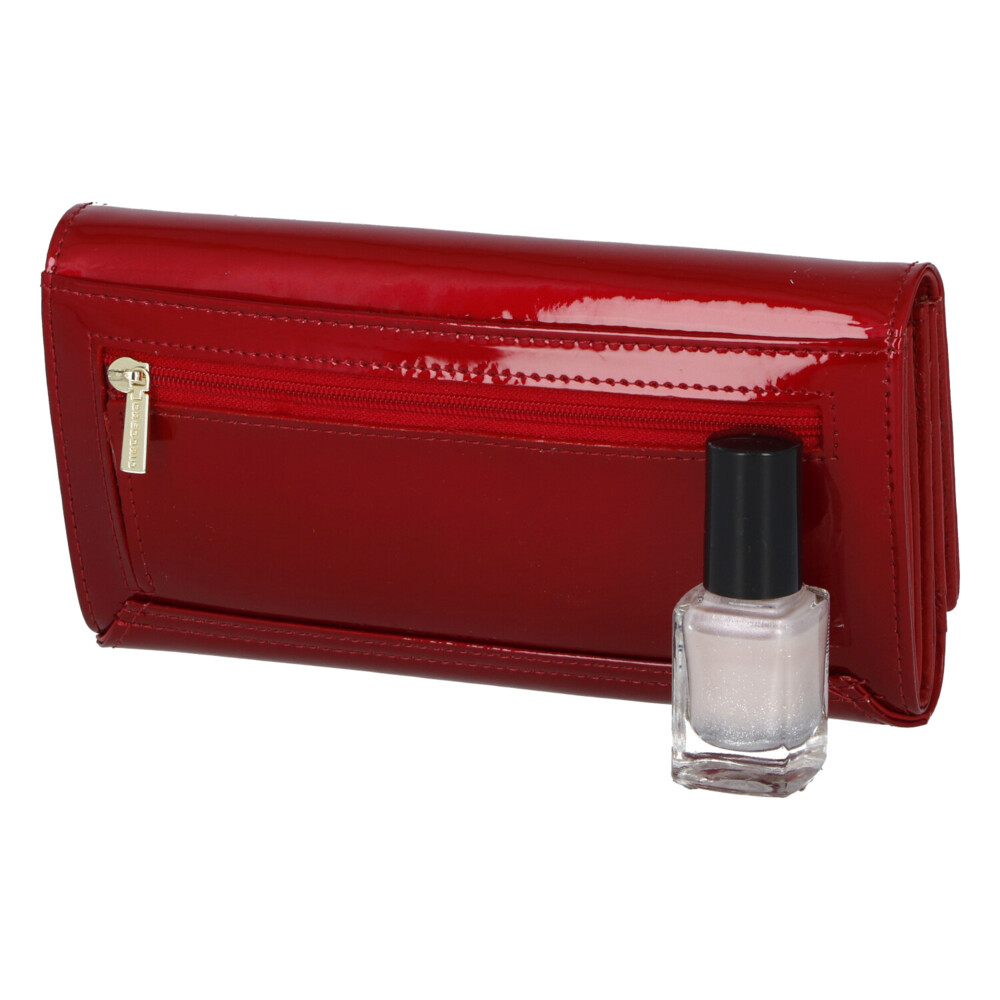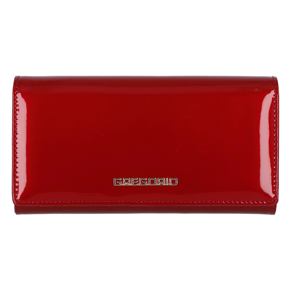 Velká a nepřehlédnutelná dámská lakovaná peněženka, od značky Gregorio. Po rozepnutí druku, nabízí dostatek místa pro uložení vašich papírových peněz a na kovové mince je tam kapsička na zip. Najdete tam i spoustu přihrádek na vaše doklady a platební karty. Přední část zdobí stylové logo značky. Peněženka se dodává v dárkovém balení. Skvělý kousek, který nelze přehlédnout! Tak objednejte ještě dnes a vyzkoušejte, vrátit ji můžete do 30ti dnů.