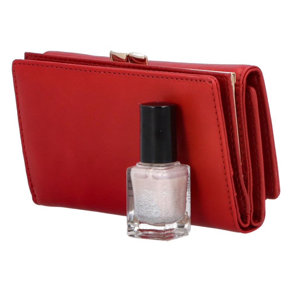 Menší dámská kožená peněženka, v hladkém červeném provedení a výrazným zlatým logem značky. Tato peněženka Vám bude dlouho sloužit a bude splňovat všechny Vaše požadavky. Nabízí dvě kapsy na druk, pro uložení vašich papírových peněz, dokladů i karet. Nechybí oblíbená průhledná okénka na fotografie vašich nejbližších. Na drobné mince je větší přihrádka, která má otevírání v kovovém rámečku. Obsahuje RFID ochranu pro ochranu vašich platebních karet před neoprávněným přístupem. Zboží se dodává v dárkové krabičce. Objednejte ještě dnes a vyzkoušejte, vrátit ji můžete až za 30 dnů!