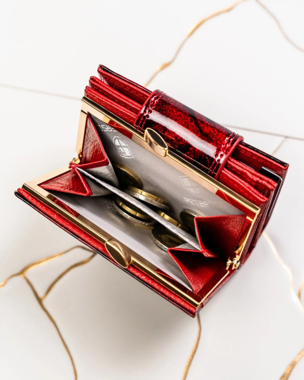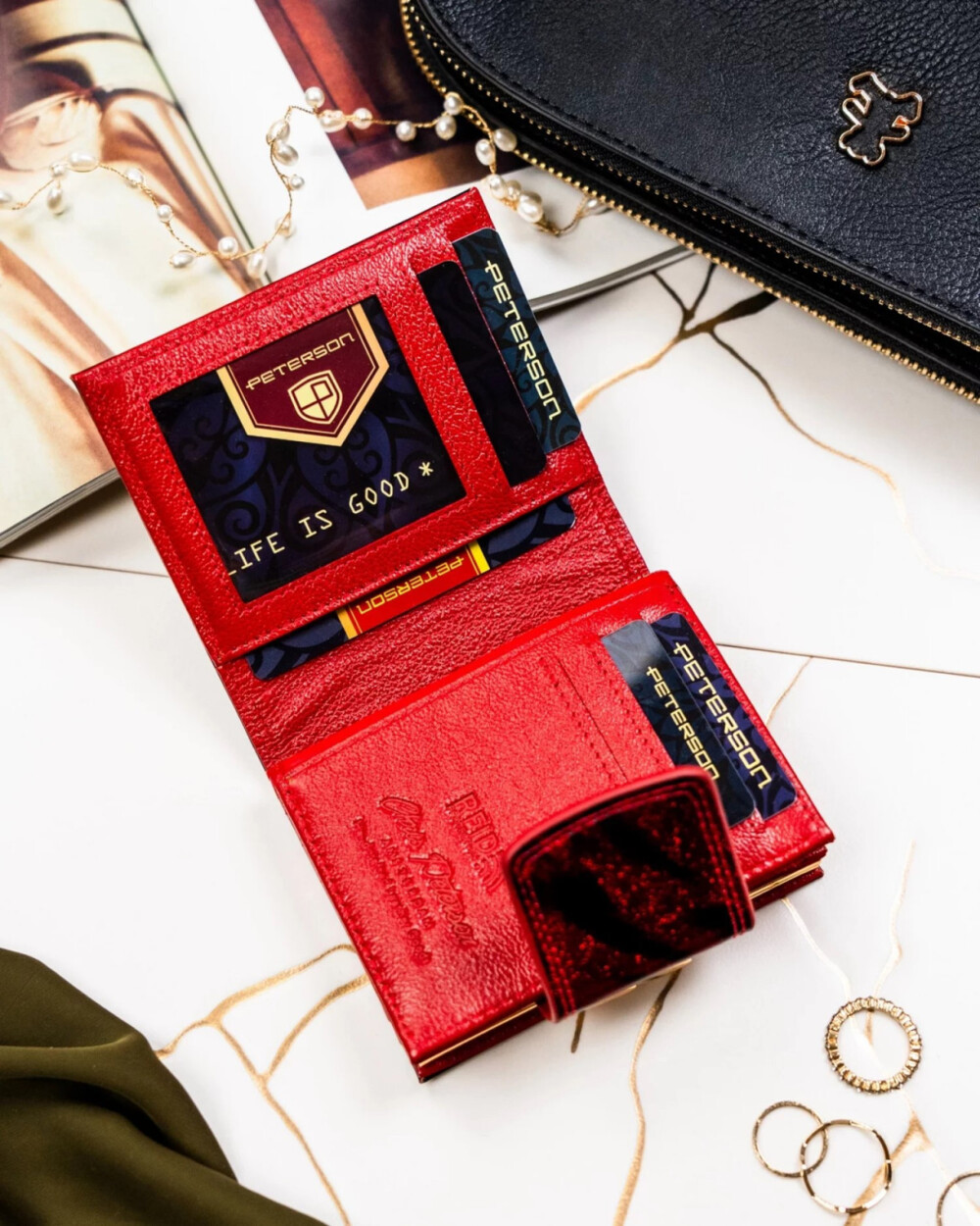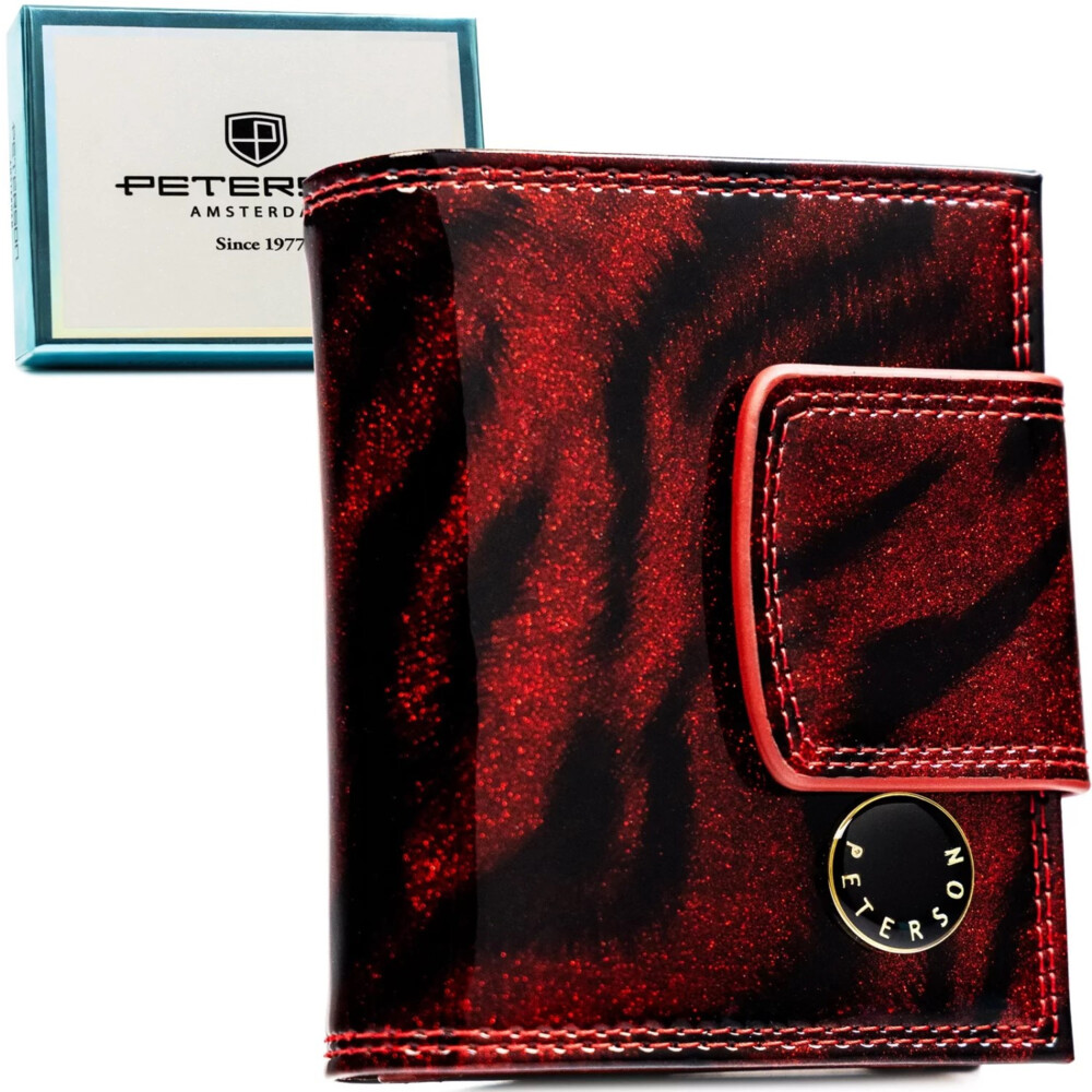 Menší dámská peněženka v lesklé černo-červené metalické kombinaci, která zaujme odvážným a sofistikovaným vzhledem. Na klopě se blyští kulaté logo značky Peterson, které dodává luxusní nádech. Po otevření se skrývají přehledné přihrádky pro karty a papírové peníze s RFID ochranou, aby vaše údaje byly v bezpečí. Kapsička na mince v kovovém rámečku přidává elegantní praktickou funkci. Peněženka dorazí v stylové dárkové krabičce, ideální pro osobní použití i jako výjimečný dárek. Objednejte ještě dnes a vyzkoušejte, vrátit ji můžete do 30ti dnů.