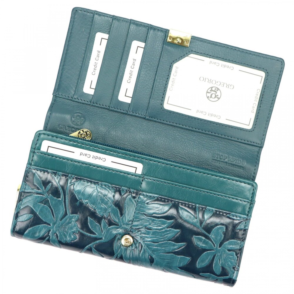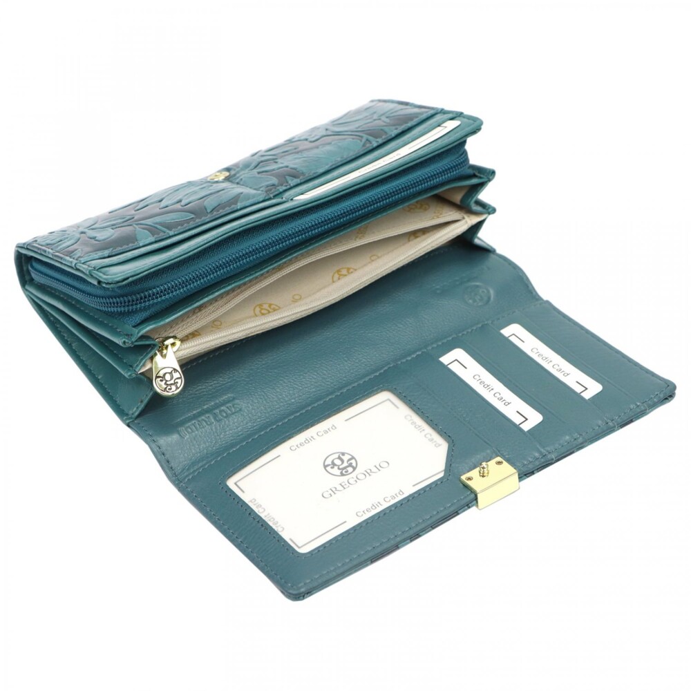 Díky jemnému květinovému designu, stylové dámské kožené peněženky od značky Gregorio, budete elegantnost sama. Vnitřek peněženky obsahuje mnoho kapes na kreditní karty a doklady. Uvnitř je i velká zipová kapsa na Vaše mince a i menší kapsička na tajnosti, také na zip. Je velmi pohodlná k nošení a skvěle se hodí na každý den. Peněženka má RFID ochranu. Tento kousek má zabudovanou fólii, proti čtení platebních karet. Peněženka se dodává v dárkové krabičce. Tak objednejte ještě dnes a vyzkoušejte, vrátit jej můžete do 30ti dnů.