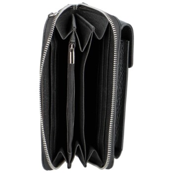 Originální novinkou od značky Delami je tato dámská peněženka v černé barvě. Jde o velmi zvláštní model, u kterého najdete peněženku a zároveň pouzdro na svůj telefon. ✅ 2v1. Objednejte tuto novinku na trhu ještě dnes, vyzkoušejte, vrátit jej můžete až za 30 dnů! Tento moderní a velmi oblíbený kousek můžete nosit v ruce, jako peněženku v kabelce nebo s popruhem jako crossbody kabelku, či přes rameno. Pod hlavní kapsou na zip najdete klasické přihrádky, jako jsou kapsy na bankovky, na mince a přihrádky na kreditní karty a doklady. Pokud nemáte velký svazek klíčů, ale naopak jeden či dva, nic jiného než toto pouzdro potřebovat nebudete. :)