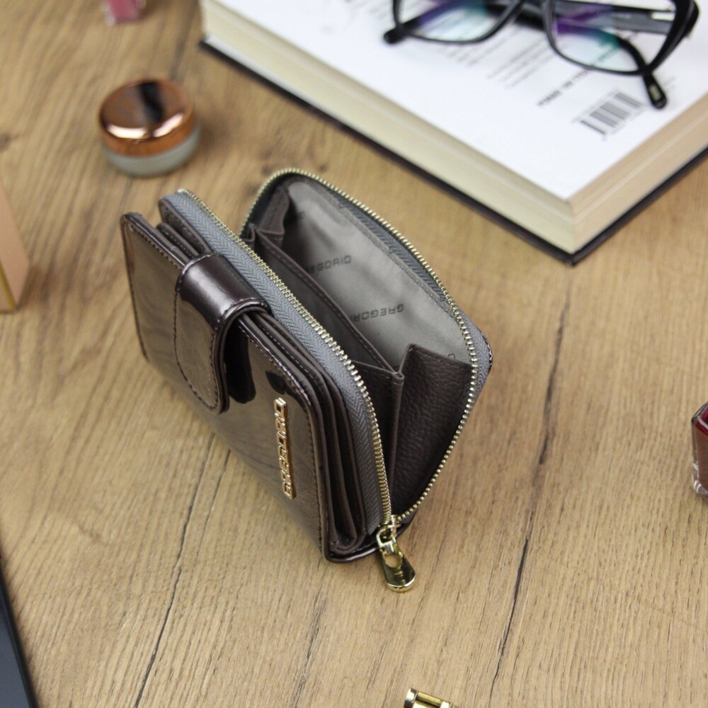 Tato luxusní peněženka je praktická a vejde se do každé kabelky. Po rozepnutí druku, nabídne prostor pro vaše peníze, doklady i platební karty v prakticky rozdělených přihrádkách. Po boku je přihrádka na zip, pro vaše mince. Přední stranu zdobí logo značky. Elegantní kožená peněženka od značky Gregorio. Dodáváno v dárkové krabičce. Tak objednejte ještě dnes a vyzkoušejte, vrátit jej můžete do 30ti dnů.