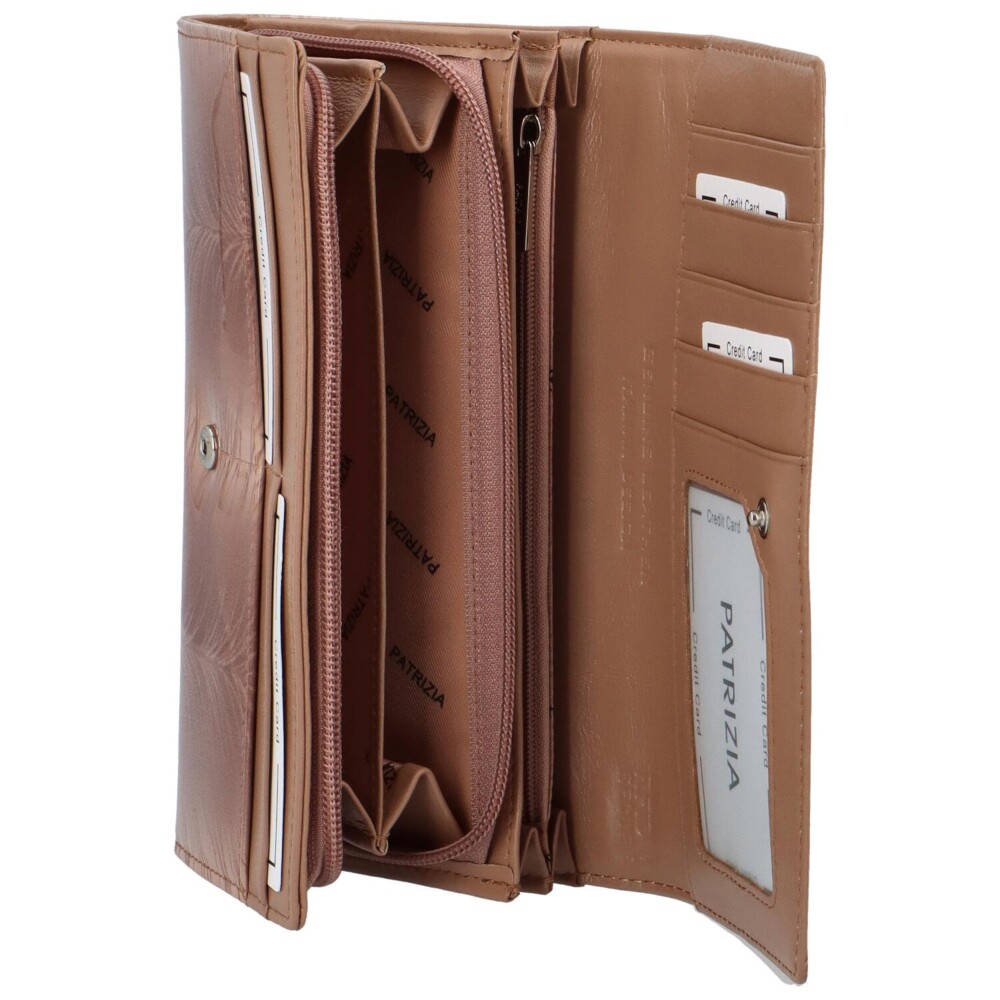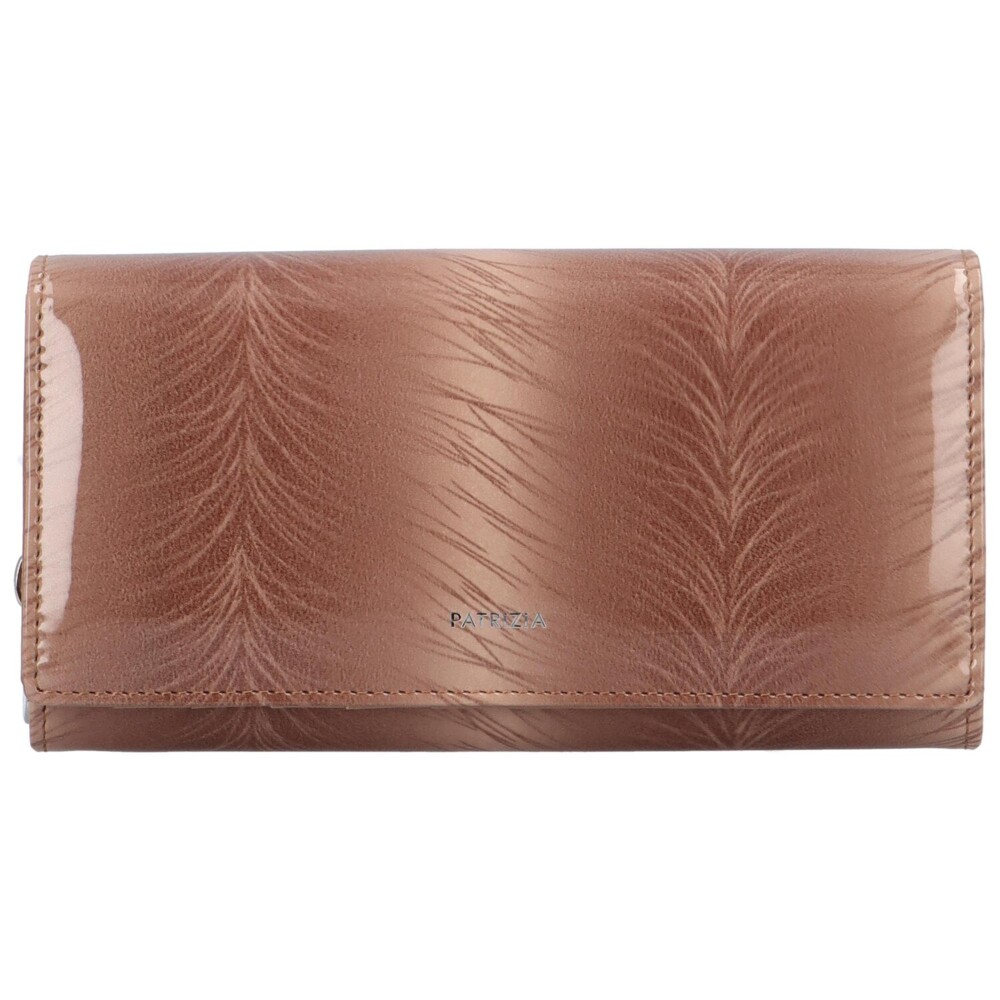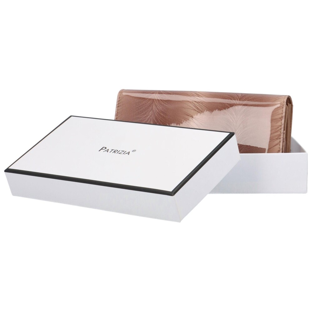 Elegantní dámská peněženka od oblíbené značky Patrizia je větších rozměrů, určena pro dámy, které ocení luxus. Dámská lakovaná peněženka ke každodennímu použití. Po otevření peněženka nabízí mnoho menších i větších kapsiček a přihrádek na Vaše bankovky, mince, doklady a karty. Vybavena je fólií RFID, proti nechtěnému čtení karet. Přední stranu peněženky zdobí malé logo značky. Dodáváme v dárkové krabičce. Tak objednejte ještě dnes a vyzkoušejte, vrátit ji můžete do 30ti dnů.