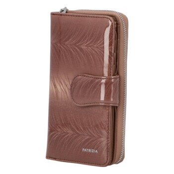 Luxusní lakovaná kožená peněženka od značky Patrizia. Praktická a velmi tvarově oblíbená dámská kožená peněženka, do každé dámské tašky. Je ušita z kůže v lakovaném provedení, se stříbrnými doplňky i logem značky. Nabízí velkou kapsu na zip, pro bezpečné a pohodlné uložení drobných mincí. Po rozevření druku uvnitř najdete spoustu místa pro uložení papírových peněz, dokladů, karet i místo pro fotografii vašich nejbližších. Peněženka má zabudovanou RFID ochranu. Zboží se dodává v dárkové krabičce. Objednejte ještě dnes a vyzkoušejte, vrátit ji můžete až za 30 dnů!
