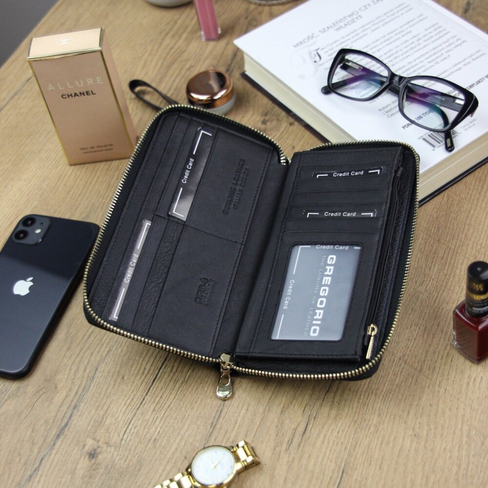 Dámská kožená pouzdrová peněženka černá - Gregorio Mallvina