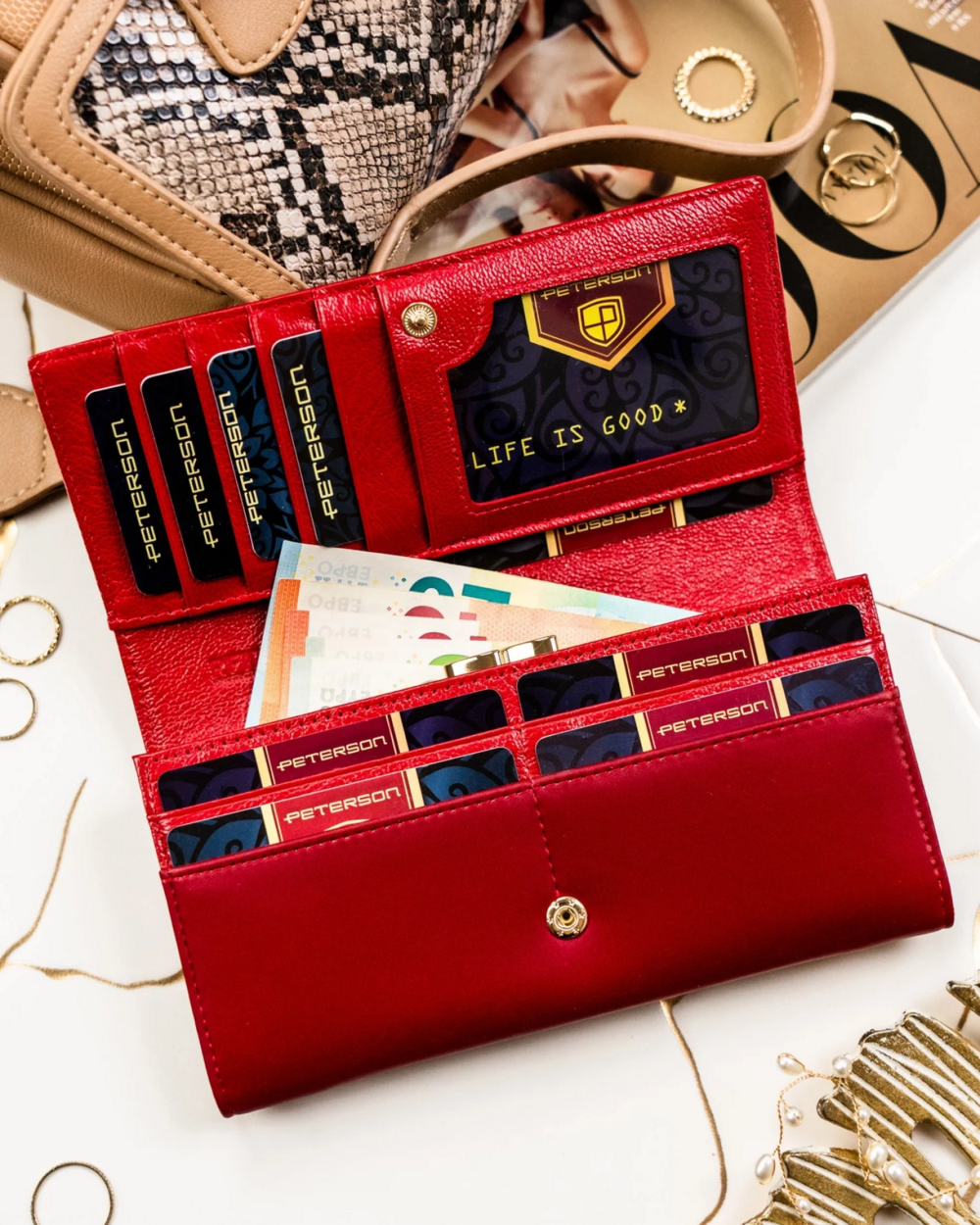 Dámská koženkovo/kožená peněženka červená - Peterson Birgita