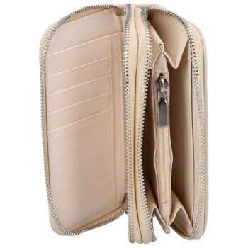 Středě velká dámská peněženka od značky DIANA & CO, v béžové barvě. Objednejte ještě dnes a vyzkoušejte, vrátit jej můžete až za 30 dnů! Peněženka se rozděluje na dvě části, obě se otevírají zipem. Na jedné straně jsou kapsy na mince a složené bankovky. Na druhé straně si uložíte bankovky, kreditní karty a doklady.