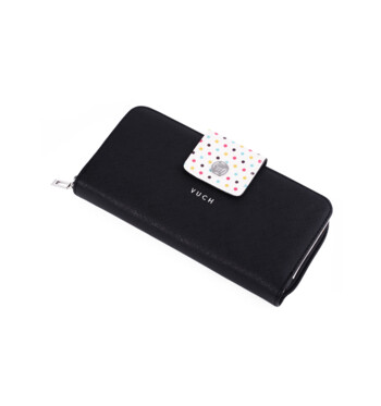 Perfektní dvoustranná peněženka v černé barvě od značky Vuch. Objednejte ještě dnes a vyzkoušejte, vrátit ji můžete až za 30 dnů! Jedna část peněženky je na zip, zde si uložíte papírové bankovky a mince. Druhá část, s puntíkatým páskem na cvok, náleží až dvanácti kreditním kartám, dokladům a vizitkám.