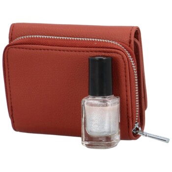 Tato malá dámská peněženka je ideální do každé malé kabelky. Peněženka je menší, praktická a z příjemné syntetické kůže. Po otevření druku se vám nabízí prostor pro vaše platební karty a vaše doklady, najdete tam i prostor pro vaše papírové peníze. V druhé části je zip, který po otevření nabízí kapsičku na vaše mince. Peněženka má na přední straně malé logo značky. Tak objednejte ještě dnes a vyzkoušejte, vrátit ji můžete do 30ti dnů.