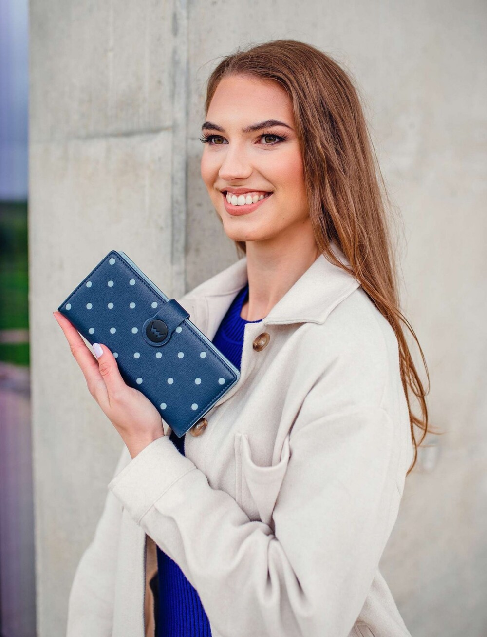 Stylová dámská velká peněženka v osvěžující modré barvě s bílými puntíky, která vás bude bavit každý den. Hravý, ale přitom elegantní design doplňuje zapínání se zápinkou s logem značky VUCH, jež dodává peněžence moderní a lehce luxusní vzhled. Uvnitř vás potěší prakticky řešený prostor - samostatná přihrádka na papírové bankovky, přehledné sloty na platební karty a zipová kapsa na mince, která udrží drobné bezpečně na svém místě. Díky většímu formátu nabízí dostatek místa, aniž by ztratila na stylu. Ideální volba pro ženy, které chtějí mít pořádek v peněžence a zároveň nepřehlédnutelný trendy doplněk. Objednejte ještě dnes a vyzkoušejte, vrátit ji můžete až za 30 dnů!