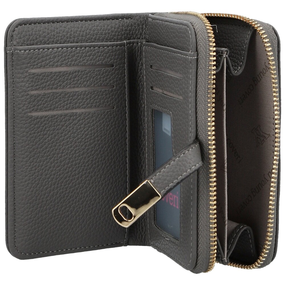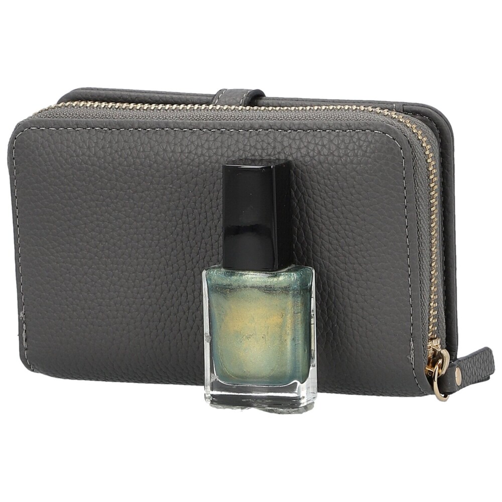Stylová dámská peněženka menšího formátu, která v sobě spojuje eleganci i praktičnost. Na přední straně ji zdobí jemné logo značky doplněné o úzký proužek zakončený kovovým zámečkem - detail, který zaujme na první pohled. Uvnitř se ukrývá přehledné uspořádání přihrádek pro karty a prostor pro papírové peníze. Zadní část doplňuje samostatná zipová kapsa na drobné mince. Kompaktní doplněk, který se snadno vejde i do menší kabelky, a přesto nabídne vše, co potřebujete každý den. Objednejte ještě dnes a vyzkoušejte, vrátit ji můžete až za 30 dnů!