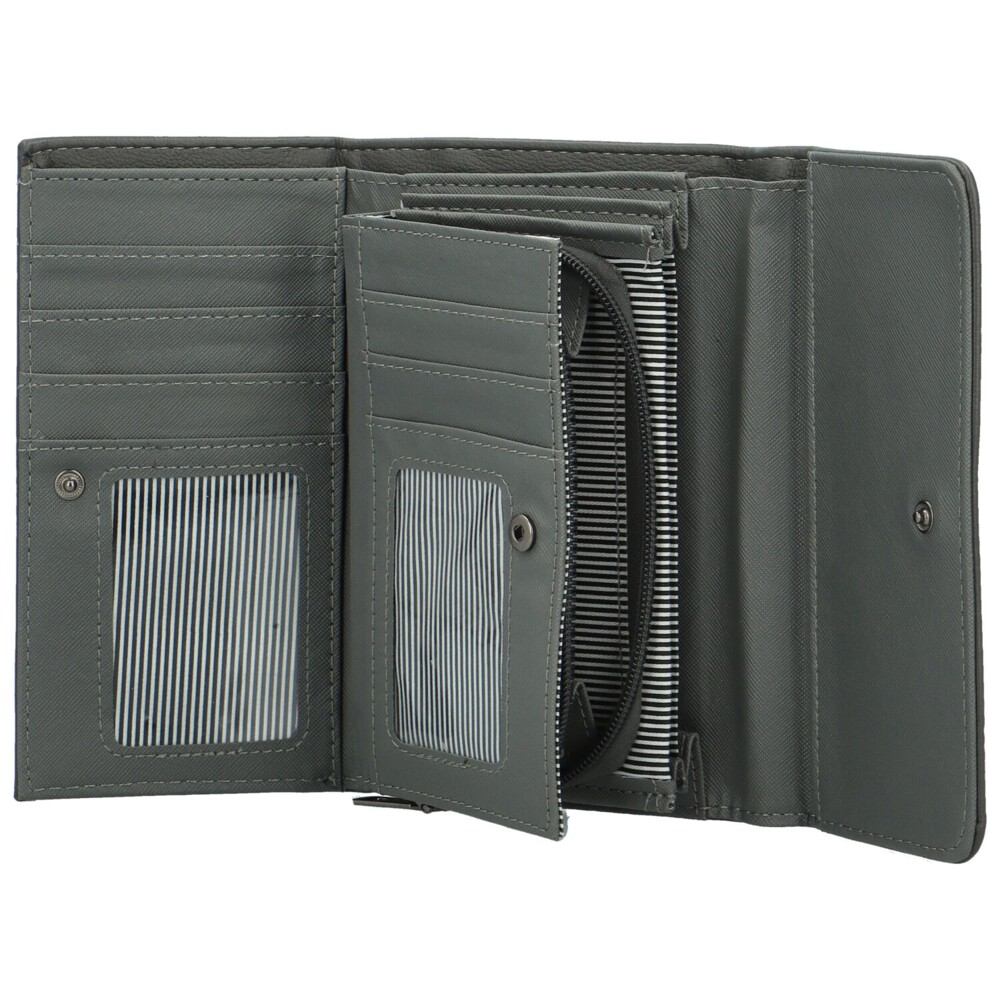 Sympatická dámská peněženka s mnoha přihrádkami a kapsami. Po otevření druku najdete dostatek místa pro všechny vaše platební karty, doklady i papírové peníze. Pro mince je kapsička se zipem. Stříbrné kování a logo značky na přední straně doladí jemný design. Stylový kousek, který se svou velikostí vejde i do menších kabelek. Objednejte ještě dnes a vyzkoušejte, vrátit ji můžete až do 30 dnů!