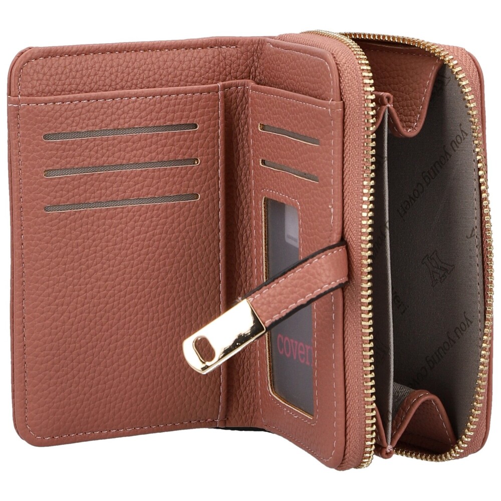 Stylová dámská peněženka menšího formátu, která v sobě spojuje eleganci i praktičnost. Na přední straně ji zdobí jemné logo značky doplněné o úzký proužek zakončený kovovým zámečkem - detail, který zaujme na první pohled. Uvnitř se ukrývá přehledné uspořádání přihrádek pro karty a prostor pro papírové peníze. Zadní část doplňuje samostatná zipová kapsa na drobné mince. Kompaktní doplněk, který se snadno vejde i do menší kabelky, a přesto nabídne vše, co potřebujete každý den. Objednejte ještě dnes a vyzkoušejte, vrátit ji můžete až za 30 dnů!