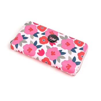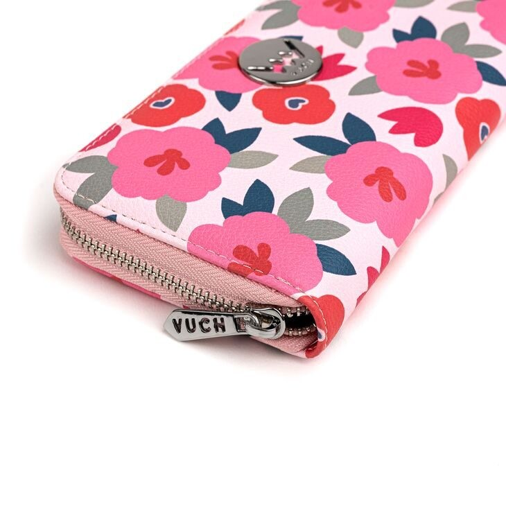 Značka Vuch. Světle růžová dámská peněženka s výraznými květy. Podlouhlá peněženka na zip. Uvnitř najdete několik přihrádek na kreditní karty a doklady, a prostřední část se zipem poslouží k uložení mincí. Na bankovky lze využít zbylé dvě kapsy.