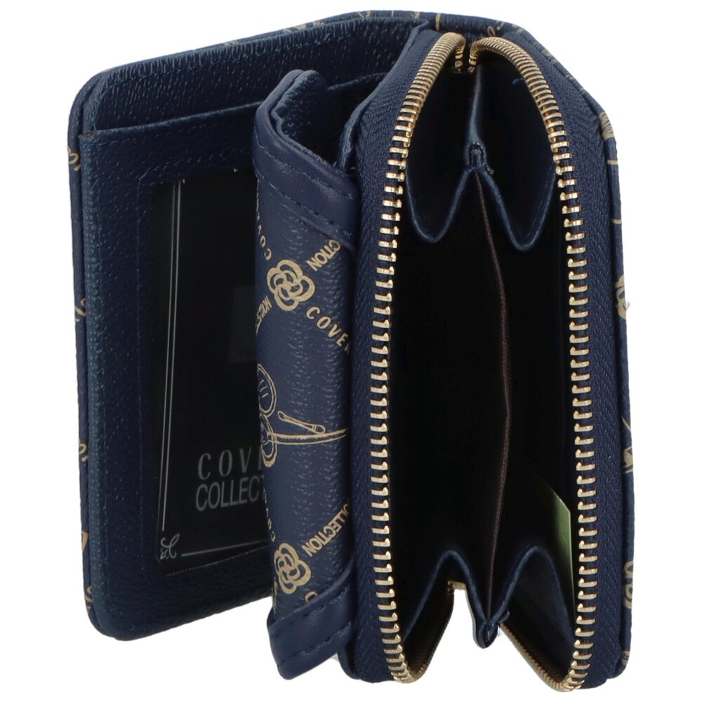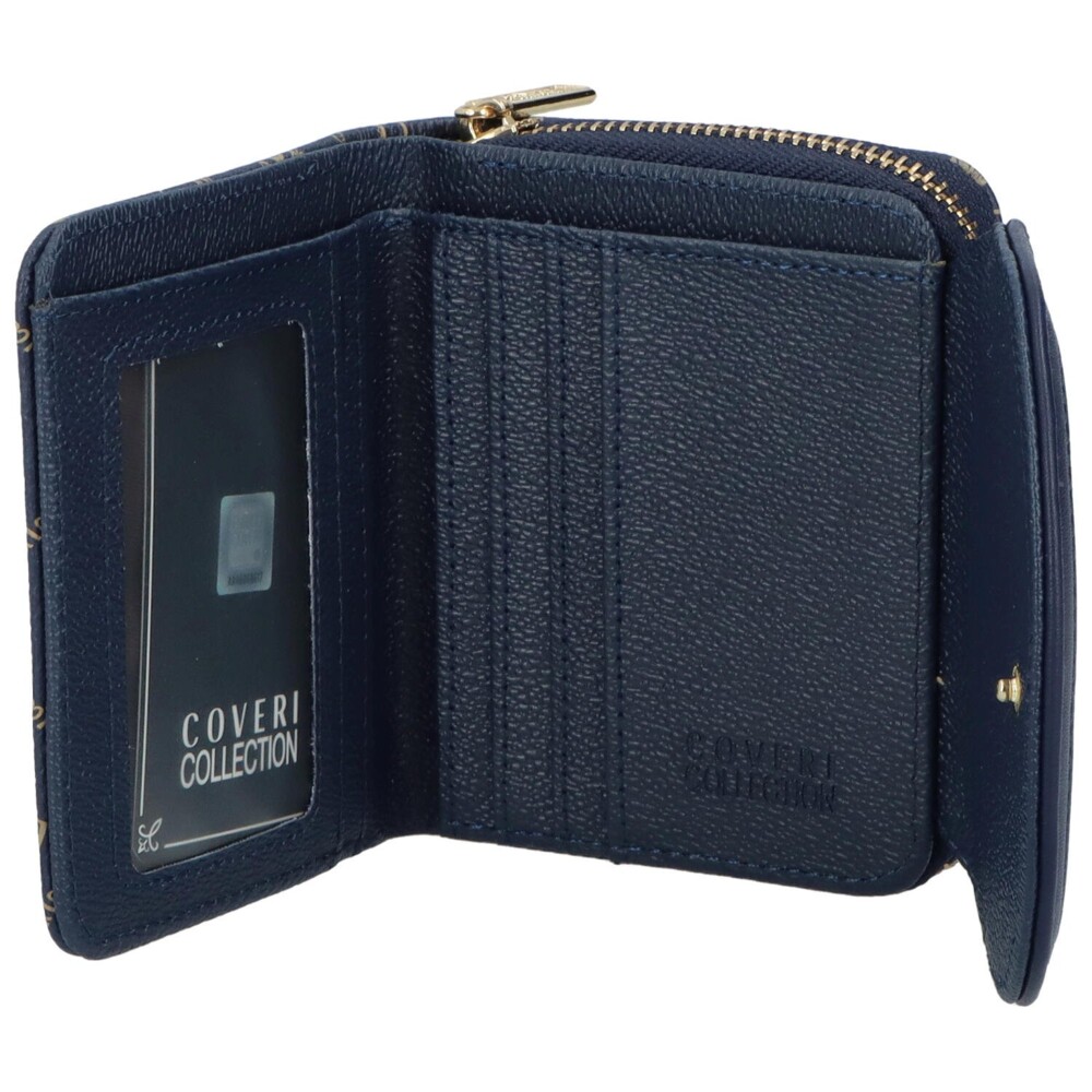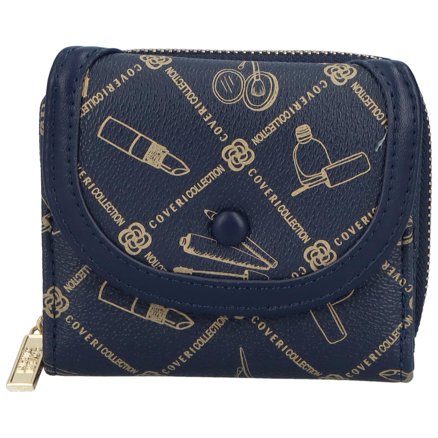 Malá luxusní peněženka pro ženy, od značky Coveri. Tmavě modrá peněženka se skládá ze dvou částí. Jedna část nabídne přihrádky na kovové mince, uzavírá se zipem. Druhá část se otevírá klopou s kovovým cvokem-knoflíčkem. Je zde přihrádka na bankovky a pár přihrádek na kreditní karty a doklady. Tak objednejte ještě dnes a vyzkoušejte, vrátit ji můžete do 30ti dnů.