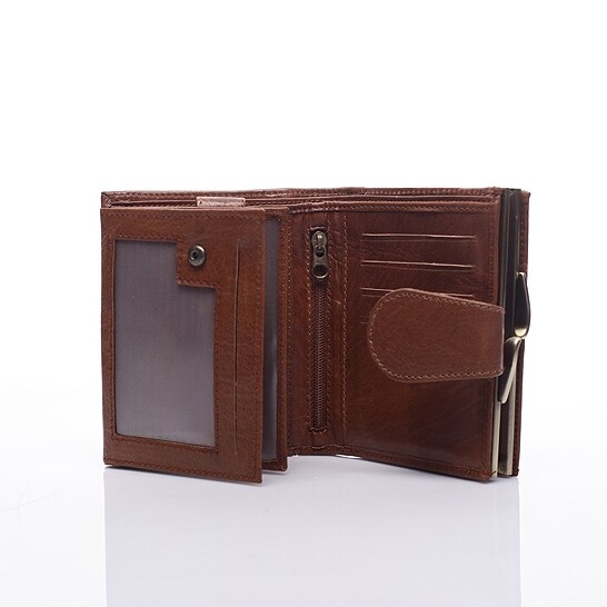 Kožená dámská stylová peněženka od značky Ellini je módní a prostorná. Je středně velká, praktická, a ve hnědé barvě z hovězí kůže je ideální denní potřebou každé ženy. Přihrádka na mince se otevírá pomocí patentu, z druhé strany se klasickým cvočkem otevírá místo pro Vaše kreditní karty, vizitky, doklady a také papírové bankovky. Objednejte ještě dnes a vyzkoušejte, vrátit ji můžete až za 30 dnů!