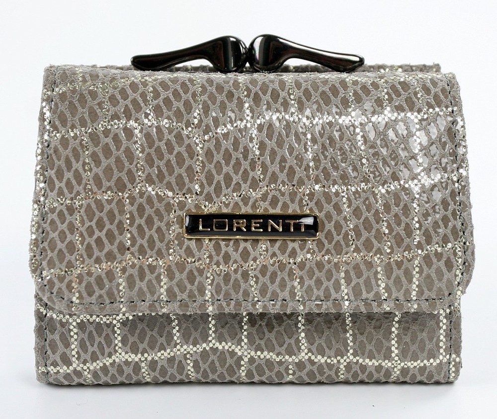 Dámské peněženky malé od značky Lorenti jsou stylové, perfektně zpracované a hlavně pro každou ženu. Peněženka je malých rozměrů, pískově šedá, se stříbrnými glittery, vleze se do malých kabelek, psaníček, kapsy apod. Peněženka má všechny nejnutnější přihrádky - na karty, bankovky (větší bankovky musíte ohnout) a kapsu na drobné mince, uzavíratelnou na kovový patent. Objednejte ještě dnes a vyzkoušejte, vrátit ji můžete až za 30 dnů!