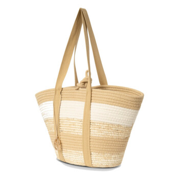 Pletený košík doplňují látkové prvky a vytvářejí tak příjemný kontrast. Kabelka má hlavní otevřenou kapsu a uvnitř je dostatek prostoru pro Vaše věci na každý letní den. Celý prostor se dá zajistit stahovacími šňůrkami. Ucha jsou pevná a budou Vám perfektně sedět na rameni. Zlatý přívěšek v podobě loga značky lze oddělat. Objednejte ještě dnes a vyzkoušejte, vrátit ji můžete až do 30 dnů!