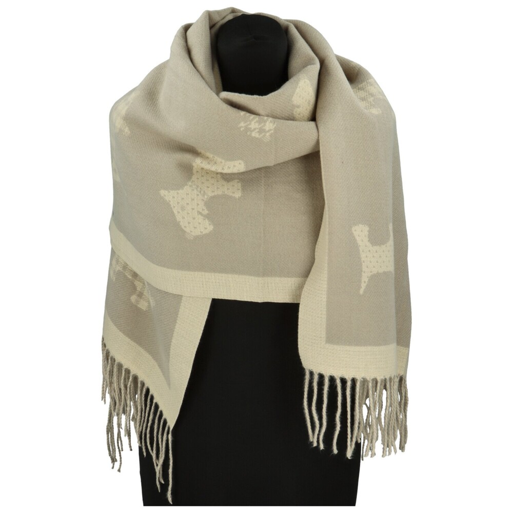 Elegantní šála z jemného kašmíru s příměsí hedvábí potěší nejen milovnice originality. Zdobí ji opakující se motiv psa, který dodává doplňku hravý, ale zároveň sofistikovaný vzhled. Díky oboustrannému provedení můžete snadno měnit styl. Jedna strana má tmavší základ se světlým vzorem, druhá naopak působí světle a jemně. Třásně na koncích podtrhují její lehkost a nadčasový šarm. Ideální pro doladění outfitu i jako stylový dárek pro milovnice zvířat. Objednejte ještě dnes a vyzkoušejte, vrátit ji můžete až do 30 dnů!