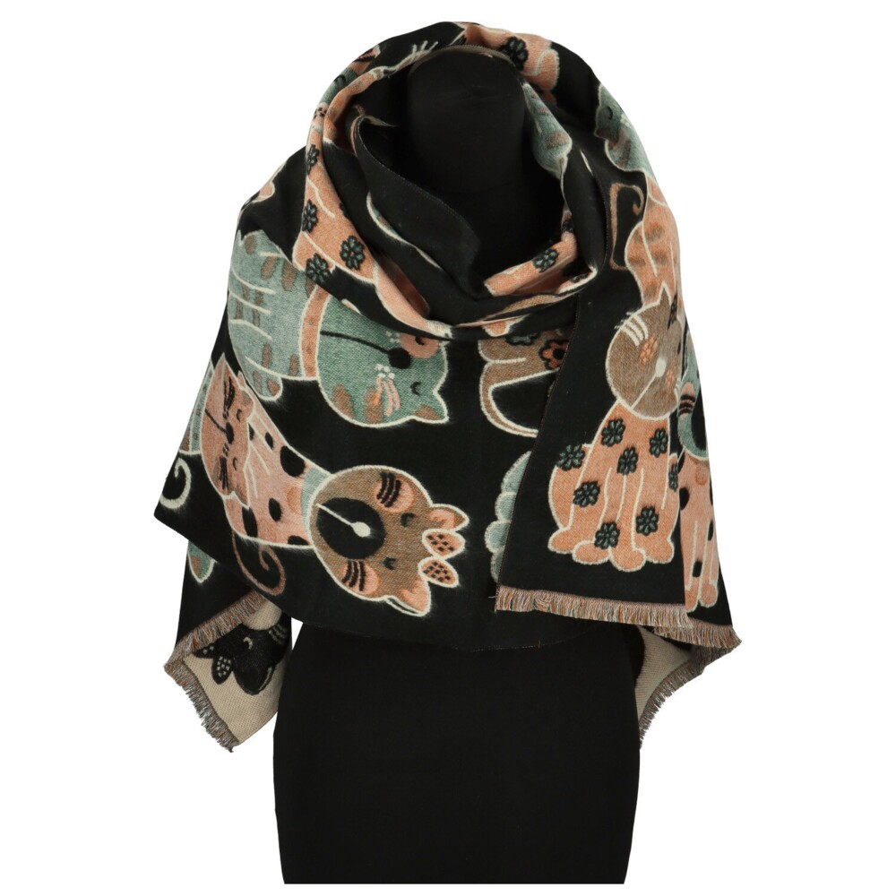 Zachumlejte se do hebkosti a dobré nálady! Tato oboustranná šála z vlny a akrylu je doslova pozvánkou do kočičí říše plné barev a pohody. Z jedné strany ji zdobí veselé kočky na tmavším podkladu, z druhé působí jemněji a světleji. Ideální, když chcete měnit styl podle nálady. Krátké třásně na koncích dodávají šále rozverný dotek. Měkoučká, hřejivá a s dávkou kočičí elegance, dokonalý doplněk pro každou milovnici originality i zvířecího kouzla. Objednejte ještě dnes a vyzkoušejte, vrátit ji můžete až do 30 dnů!